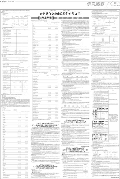 本公司董事会及全体董事保证本公告内容不存在任何虚假记载、误导性陈述或者重大遗漏,并对其内容的真实性、准确性和完整性依法承担法律责任。 重要内容提示: 公司董事会及董事、高级管理人员保证季度报告内容的真实、准确、完整,不存在虚假记载、误导性陈述或重大遗漏,并承担个别和连带的法律责任。 公司负责人、主管会计工作负责人及会计机构负责人(会计主管人员)保证季度报告中财务信息的真实、准确、完整。 第三季度财务报表是否经审计 □是 √否 一、主要财务数据 (一)主要会计数据和财务指标 单位:元币种:人民币 ■ 注:“本报告期”指本季度初至本季度末3个月期间,下同。 (二)非经常性损益项目和金额 √适用 □不适用 单位:元币种:人民币 ■ 对公司将《公开发行证券的公司信息披露解释性公告第1号一一非经常性损益》未列举的项目认定为非经常性损益项目且金额重大的,以及将《公开发行证券的公司信息披露解释性公告第1号一一非经常性损益》中列举的非经常性损益项目界定为经常性损益的项目,应说明原因。 □适用 √不适用 (三)主要会计数据、财务指标发生变动的情况、原因 √适用 □不适用 ■ 二、股东信息 (一)普通股股东总数和表决权恢复的优先股股东数量及前十名股东持股情况表 单位:股 ■ 注:公司回购专用证券账户不在上述“前10名股东持股情况”及“前10名无限售条件股东持股情况”中列示;截至本报告期期末,合肥晶合集成电路股份有限公司回购专用证券账户持有公司股份62,088,500股,占公司股本总数的3.09%。 持股5%以上股东、前10名股东及前10名无限售流通股股东参与转融通业务出借股份情况 □适用 √不适用 前10名股东及前10名无限售流通股股东因转融通出借/归还原因导致较上期发生变化 □适用 √不适用 三、其他提醒事项 需提醒投资者关注的关于公司报告期经营情况的其他重要信息 √适用 □不适用 1、向2025年限制性股票激励计划激励对象授予预留部分限制性股票 晶合集成《2025年限制性股票激励计划》及其摘要规定的预留授予条件已经成就,根据公司2024年年度股东会的授权,公司于2025年10月29日召开第二届董事会第二十七次会议,审议通过了《关于向2025年限制性股票激励计划激励对象授予预留部分限制性股票的议案》,确定2025年10月29日为预留授予日,以人民币12.00元/股的授予价格向60名激励对象授予270.00万股限制性股票。具体情况详见公司在上海证券交易所(www.sse.com.cn)披露的《晶合集成关于向2025年限制性股票激励计划激励对象授予预留部分限制性股票的公告》(公告编号:2025-065)。2、2023年限制性股票激励计划首次授予部分第一个归属期归属条件成就 2025年10月29日,公司召开第二届董事会第二十七次会议,审议通过《关于2023年限制性股票激励计划首次授予部分第一个归属期归属条件成就的议案》。根据公司《2023年限制性股票激励计划》《2023年限制性股票激励计划实施考核管理办法》等相关规定,本激励计划首次授予的限制性股票第一个归属期归属条件已经成就,本次可归属激励对象的归属资格合法、有效,可归属的限制性股票数量为1,462,540股。根据公司2023年第二次临时股东大会的授权,公司拟按照激励计划的相关规定为符合条件的333名激励对象办理归属相关事宜。具体情况详见公司在上海证券交易所(www.sse.com.cn)披露的《晶合集成关于2023年限制性股票激励计划首次授予部分第一个归属期归属条件成就的公告》(公告编号:2025-066)。 3、作废2023年限制性股票激励计划部分已授予尚未归属的限制性股票 公司于2025年10月29日召开第二届董事会第二十七次会议,审议通过了《关于作废2023年限制性股票激励计划部分已授予尚未归属的限制性股票的议案》,根据公司《2023年限制性股票激励计划》《2023年限制性股票激励计划实施考核管理办法》的规定和公司2023年第二次临时股东大会的授权,公司董事会同意作废部分已授予但尚未归属的限制性股票6,443,198股。具体情况详见公司在上海证券交易所(www.sse.com.cn)披露的《晶合集成关于作废2023年限制性股票激励计划部分已授予尚未归属的限制性股票的公告》(公告编号:2025-067)。 四、季度财务报表 (一)审计意见类型 □适用 √不适用 (二)财务报表 合并资产负债表 2025年9月30日 编制单位:合肥晶合集成电路股份有限公司 单位:元币种:人民币审计类型:未经审计 ■ 公司负责人:蔡国智主管会计工作负责人:朱才伟会计机构负责人:王兴亚 合并利润表 2025年1一9月 编制单位:合肥晶合集成电路股份有限公司 单位:元币种:人民币审计类型:未经审计 ■ 本期发生同一控制下企业合并的,被合并方在合并前实现的净利润为:0元, 上期被合并方实现的净利润为:0元。 公司负责人:蔡国智主管会计工作负责人:朱才伟会计机构负责人:王兴亚 合并现金流量表 2025年1一9月 编制单位:合肥晶合集成电路股份有限公司 单位:元币种:人民币审计类型:未经审计 ■ 公司负责人:蔡国智主管会计工作负责人:朱才伟会计机构负责人:王兴亚 2025年起首次执行新会计准则或准则解释等涉及调整首次执行当年年初的财务报表 □适用 √不适用 特此公告。 合肥晶合集成电路股份有限公司董事会 2025年10月29日 证券代码:688249 证券简称:晶合集成 公告编号:2025-067 合肥晶合集成电