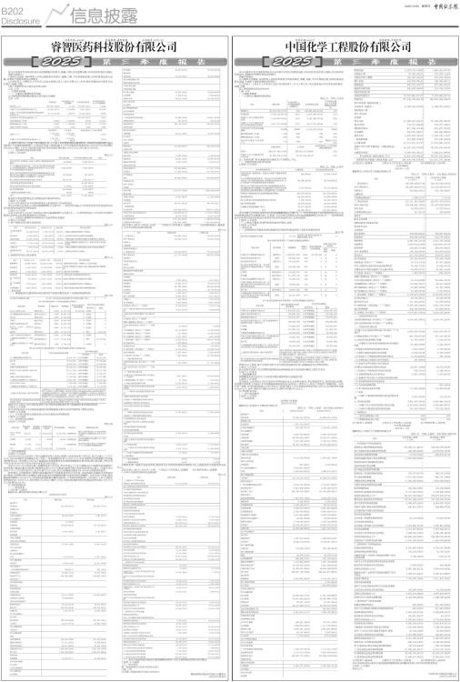 证券代码:601117 证券简称:中国化学 中国化学工程股份有限公司 本公司董事会及全体董事保证本公告内容不存在任何虚假记载、误导性陈述或者重大遗漏,并对其内容的真实性、准确性和完整性承担法律责任。 重要内容提示: 公司董事会及董事、高级管理人员保证季度报告内容的真实、准确、完整,不存在虚假记载、误导性陈述或重大遗漏,并承担个别和连带的法律责任。 公司负责人、主管会计工作负责人及会计机构负责人(会计主管人员)保证季度报告中财务信息的真实、准确、完整。 第三季度财务报表是否经审计 □是 √否 一、主要财务数据 (一)主要会计数据和财务指标 单位:元 币种:人民币 ■ 注:“本报告期”指本季度初至本季度末3个月期间,下同。 (二)非经常性损益项目和金额 √适用 □不适用 单位:元 币种:人民币 ■ 对公司将《公开发行证券的公司信息披露解释性公告第1号一一非经常性损益》未列举的项目认定为非经常性损益项目且金额重大的,以及将《公开发行证券的公司信息披露解释性公告第1号一一非经常性损益》中列举的非经常性损益项目界定为经常性损益的项目,应说明原因。 □适用 √不适用 (三)主要会计数据、财务指标发生变动的情况、原因 □适用 √不适用 二、股东信息 (一)普通股股东总数和表决权恢复的优先股股东数量及前十名股东持股情况表 单位:股 ■ 持股5%以上股东、前10名股东及前10名无限售流通股股东参与转融通业务出借股份情况 □适用 √不适用 前10名股东及前10名无限售流通股股东因转融通出借/归还原因导致较上期发生变化 □适用 √不适用 三、其他提醒事项 需提醒投资者关注的关于公司报告期经营情况的其他重要信息 √适用 □不适用 报告期内,公司坚持以习近平新时代中国特色社会主义思想为指导,坚决贯彻党中央、国务院重大部署,认真落实国资委工作要求,牢牢把握高质量发展任务,坚定信心、真抓实干,各项工作取得了积极进展。2025年前三季度,公司实现营业收入1358.45亿元,实现归属于上市公司股东的净利润42.32亿元,实现新签合同额2545.61亿元,其中,境内合同额2309.09亿元,境外合同额536.52亿元。 四、季度财务报表 (一)审计意见类型 □适用 √不适用 (二)财务报表 合并资产负债表 2025年9月30日 编制单位:中国化学工程股份有限公司 单位:元 币种:人民币 审计类型:未经审计 ■ ■ 公司负责人:莫鼎革 主管会计工作负责人:刘东进 会计机构负责人:张学明 合并利润表 2025年1一9月 编制单位:中国化学工程股份有限公司 单位:元 币种:人民币 审计类型:未经审计 ■ 公司负责人:莫鼎革 主管会计工作负责人:刘东进 会计机构负责人:张学明 合并现金流量表 2025年1一9月 编制单位:中国化学工程股份有限公司 单位:元 币种:人民币 审计类型:未经审计 ■ 公司负责人:莫鼎革 主管会计工作负责人:刘东进 会计机构负责人:张学明 2025年起首次执行新会计准则或准则解释等涉及调整首次执行当年年初的财务报表 □适用 √不适用 特此公告。 中国化学工程股份有限公司 2025年10月30日