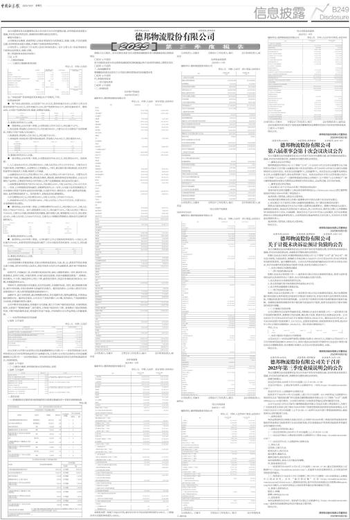 本公司董事会及全体董事保证本公告内容不存在任何虚假记载、误导性陈述或者重大遗漏,并对其内容的真实性、准确性和完整性承担法律责任。 重要内容提示: 公司董事会及董事、高级管理人员保证季度报告内容的真实、准确、完整,不存在虚假记载、误导性陈述或重大遗漏,并承担个别和连带的法律责任。 公司负责人、主管会计工作负责人及会计机构负责人(会计主管人员)保证季度报告中财务信息的真实、准确、完整。 第三季度财务报表是否经审计 □是 √否 一、主要财务数据 (一)主要会计数据和财务指标 单位:元 币种:人民币 ■ 注:“本报告期”指本季度初至本季度末3个月期间,下同。 经营业绩分析 ● 资产状况:报告期末,公司总资产161.41亿元,较年初减少4.88%;归属于上市公司股东的净资产80.32亿元,较年初减少5.10%;资产负债率为50.11%,较年初基本持平。整体来看,公司资产负债结构合理、稳健,偿债能力较强。 ■ 注:数据已经四舍五入计算。 ● 营收情况:2025年第三季度,公司营业收入为97.15亿元,同比减少1.37%。 1、快运业务:营业收入为88.05亿元,同比减少0.84%,主要为公司主动推进产品结构调优,非核心主营产品收入同比减少。 2、快递业务:营业收入为4.34亿元,同比减少18.84%。 3、其他业务:其他业务主要为供应链业务,营业收入为4.76亿元,同比增长9.35%。 ■ 注:数据已经四舍五入计算。 ● 成本情况:2025年第三季度,公司营业成本为95.35亿元,同比增长4.57%。具体来看: 1、人工成本40.43亿元,同比增长9.65%,占收入比同比上升4.18个百分点。主要为公司为提升收派、时效等能力,主动增加人力资源投入。同时,通过提升部分提成标准、优化奖罚机制等方式提高员工待遇,增强员工归属感。 2、运输成本43.91亿元,同比增长0.78%,占收入比同比上升0.96个百分点。主要为公司为提升客户体验,保障运输时效,增加发车频次,燃油费、路桥费等成本相应增长,以及公司调优产品结构,主要使用外部运力的非核心主营产品规模缩减,相关成本同比减少。 3、房租费及使用权资产折旧4.16亿元,同比增长2.09%,占收入比同比上升0.14个百分点。一方面,公司积极推进场站融合、房租降免谈判;另一方面,公司基于业务发展规划,针对末端网点密度不足和非最优区位的问题,主动新开网点、调优区位。此外,随着业务发展,场站、仓库等租赁面积扩大。综合影响下,房租成本同比略微增长。 4、折旧摊销2.63亿元,同比增长0.65%,占收入比同比上升0.05个百分点。 5、其他成本4.23亿元,同比增长4.08%,占收入比同比上升0.23个百分点,主要为办公、水电等费用同比增加。 ● 费用情况:2025年第三季度,公司期间费用为5.66亿元,同比增长9.22%,占收入比同比上升0.56个百分点。其中,销售费用1.72亿元,同比减少7.83%,占收入比同比下降0.12个百分点,主要为公司通过系统性的培训赋能,提升销售人效。管理费用3.18亿元,同比增长22.34%,占收入比同比上升0.64个百分点,主要为公司调整经营策略后,增加后台支撑性资源的投入。 ■ 注:数据已经四舍五入计算。 ● 盈利情况:2025年第三季度,公司归属于上市公司股东的净利润为-3.29亿元,同比减少278.64%,扣除非经常性损益后归属于上市公司股东的净利润为-3.28亿元,同比减少313.19%。 ■ 注:数据已经四舍五入计算。 其他经营数据 公司持续深耕大件配送领域,完善大件配称体系建设,从收、转、运、派各环节的业务痛点逐个突破,进行针对性投入及优化,满足市场多元化的大件运输需求,提升客户的服务体验: 收派环节,升级配送工具,持续提升收派及时率,强化上楼服务建设。同时,推进多元化派送模式,如同行共配、乡镇代理等,升级行政区划地图,实现乡镇覆盖范围更广、更精准。报告期内,十万票上楼送货呼入同比下降,截至报告期末,快递员末端收派四轮车28,163辆,乡镇覆盖率96.40%。 中转环节,持续加强自动化建设,优化作业流程、升级操作标准。同时,通过场地聚合调优,减少中转次数,实现分拣效率与质量的同步提升。截至报告期末,公司投入使用自动化设备场地47个、投入使用即装即卸设备场地94个。 运输环节,基于全网资源,通过智能路由规划,优化线路布局,保障运输质量,并提高运输时效稳定性。截至报告期末,公司自有干支线车辆17,411辆,报告期内,干线线路增加100余条,时效履约率同比提升。 公司不断夯实底盘建设,持续提升交付质量,致力于为客户提供更加高效、可靠的物流服务,实现客户“极致的体验”,报告期内,万票客户投诉同比下降。直营模式下稳定的网络布局、不断升级的服务品质、持续提升的客户体验,共同保障公司大件业务收入的健康发展。 (二)非经常性损益项目和金额 √适用 □不适用 单位:元 币种:人民币 ■ 对公司将《公开发行证券的公司信息披露解释性公告第1号一一非经常性损益》未列举的项目认定为非经常性损益项目且金额重大的,以及将《公开发行证券的公司信息披露解释性公告第1号一一非经常性损益》中列举的非经常性损益项目界定为经常性损益的项目,应说明原因。 □适用 √不适用 (三)主要会计数据、财务指标发生变动的情况、原因 √适用 □不适用 ■ 二、股东信息 (一)普通股股东总数和表决权恢复的优先股股东数量及前十名股东持股情况表 单位:股 ■ 持股5%以上股东、前10名股东及前10名无限售流通股股东参与转融通业务出