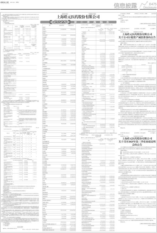 本公司董事会及全体董事保证本公告内容不存在任何虚假记载、误导性陈述或者重大遗漏,并对其内容的真实性、准确性和完整性依法承担法律责任。 重要内容提示: 公司董事会及董事、高级管理人员保证季度报告内容的真实、准确、完整,不存在虚假记载、误导性陈述或重大遗漏,并承担个别和连带的法律责任。 公司负责人、主管会计工作负责人及会计机构负责人(会计主管人员)保证季度报告中财务信息的真实、准确、完整。 第三季度财务报表是否经审计 □是√否 一、主要财务数据 (一)主要会计数据和财务指标 单位:元 币种:人民币 ■ 注:“本报告期”指本季度初至本季度末3个月期间,下同。 (二)非经常性损益项目和金额 √适用 □不适用 单位:元 币种:人民币 ■ 对公司将《公开发行证券的公司信息披露解释性公告第1号一一非经常性损益》未列举的项目认定为非经常性损益项目且金额重大的,以及将《公开发行证券的公司信息披露解释性公告第1号一一非经常性损益》中列举的非经常性损益项目界定为经常性损益的项目,应说明原因。 □适用 √不适用 (三)主要会计数据、财务指标发生变动的情况、原因 √适用 □不适用 ■ 二、股东信息 (一)普通股股东总数和表决权恢复的优先股股东数量及前十名股东持股情况表 单位:股 ■ 持股5%以上股东、前10名股东及前10名无限售流通股股东参与转融通业务出借股份情况 □适用 √不适用 前10名股东及前10名无限售流通股股东因转融通出借/归还原因导致较上期发生变化 □适用√不适用 三、其他提醒事项 需提醒投资者关注的关于公司报告期经营情况的其他重要信息 √适用 □不适用 1、取消监事会相关事项 2025年6月18日,公司召开第四届董事会第六次会议、第四届监事会第六次会议,决议取消监事会,并据此制定及修订了《公司章程》等32项内部治理制度。 2025年7月7日,公司召开2025年第四次临时股东大会,审议通过取消监事会及修订相关制度的议案,并于同日完成职工董事的法定选举程序。 2、2022年限制性股票激励计划 公司于2025年3月26日召开了第四届董事会第四次会议、第四届监事会第四次会议,审议通过了《关于作废部分2022年限制性股票激励计划已授予尚未归属的限制性股票的议案》《关于公司2022年限制性股票激励计划首次授予部分第三个归属期以及预留部分第二个归属期符合归属条件的议案》,公司2022年限制性股票激励计划首次授予部分第三个归属期以及预留部分第二个归属期的归属条件已经成就,可归属股份870,180股。 2025年6月30日,公司完成了2022年限制性股票激励计划首次授予部分第三个归属期和预留部分第二个归属期的股份登记手续,本次登记股份648,570股,于2025年7月8日上市流通,具体内容详见公司于2025年7月3日在上海证券交易所网站披露的相关公告。 3、2023年限制性股票激励计划 公司于2025年7月18日召开了第四届董事会薪酬与考核委员会第四次会议和第四届董事会第九次会议,审议通过了《关于公司2023年限制性股票激励计划第一类限制性股票第二个解除限售期解除限售条件成就的议案》《关于公司2023年限制性股票激励计划第二类限制性股票第二个归属期符合归属条件的议案》。 2023年限制性股票激励计划第一类限制性股票第二个解除限售期解除限售条件已成就,符合解除限售条件成就的激励对象共6名,可解除限售的限制性股票数量为119,000股,该部分股份于2025年8月4日上市流通。 2023年限制性股票激励计划第二类限制性股票第二个归属期归属条件已经成就,可归属第二类限制性股票530,950股。在本次归属登记过程中,1名外籍激励对象因个人原因暂缓归属,因此本次激励计划第二类限制性股票第二个归属期实际归属股份527,660股,于2025年7月31日完成归属登记手续,于2025年8月6日上市流通。具体内容详见公司于2025年7月19日、7月26日、8月2日在上海证券交易所网站披露的相关公告。 4、2023年、2025年限制性股票授予价格调整事项 公司于2025年9月26日召开了第四届董事会薪酬与考核委员会第五次会议和第四届董事会第十二次会议,审议《关于调整2023年、2025年限制性股票激励计划授予价格的议案》,同意对2023年、2025年限制性股票激励计划的相应授予价格进行调整。2023年限制性股票激励计划的第二类限制性股票授予价格由22.56元/股调整为22.48元/股;2025年限制性股票激励计划的授予价格由21.62元/股调整为21.39元/股。具体内容详见公司于2025年9月27日在上海证券交易所网站披露的相关公告。 四、季度财务报表 (一)审计意见类型 □适用√不适用 (二)财务报表 合并资产负债表 2025年9月30日 编制单位:上海皓元医药股份有限公司 单位:元 币种:人民币 审计类型:未经审计 ■ 公司负责人:郑保富 主管会计工作负责人:李敏 会计机构负责人:李敏 合并利润表 2025年1一9月 编制单位:上海皓元医药股份有限公司 单位:元 币种:人民币 审计类型:未经审计 ■ 本期发生同一控制下企业合并的,被合并方在合并前实现的净利润为:0.00元,上期被合并方实现的净利润为:0.00元。 公司负责人:郑保富 主管会计工作负责人:李敏 会计机构负责人:李敏 合并现金流量表 2025年1一9月 编制单位:上海皓元医药股份有限公司 单位:元 币种:人民币 审计类型:未经审计 ■ 公司负责人:郑保富 主管会计工作负责人:李