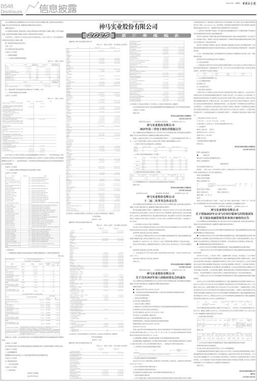 本公司董事会及全体董事保证本公告内容不存在任何虚假记载、误导性陈述或者重大遗漏,并对其内容的真实性、准确性和完整性承担法律责任。 重要内容提示: 公司董事会及董事、高级管理人员保证季度报告内容的真实、准确、完整,不存在虚假记载、误导性陈述或重大遗漏,并承担个别和连带的法律责任。 公司负责人、主管会计工作负责人及会计机构负责人(会计主管人员)保证季度报告中财务信息的真实、准确、完整。 第三季度财务报表是否经审计 □是 √否 审计师发表非标意见的事项 □适用 √不适用 一、主要财务数据 (一)主要会计数据和财务指标 单位:元 币种:人民币 ■ 注:“本报告期”指本季度初至本季度末3个月期间,下同。 (二)非经常性损益项目和金额 √适用 □不适用 单位:元 币种:人民币 ■ 对公司将《公开发行证券的公司信息披露解释性公告第1号一一非经常性损益》未列举的项目认定为非经常性损益项目且金额重大的,以及将《公开发行证券的公司信息披露解释性公告第1号一一非经常性损益》中列举的非经常性损益项目界定为经常性损益的项目,应说明原因。 □适用 √不适用 (三)主要会计数据、财务指标发生变动的情况、原因 √适用 □不适用 ■ 二、股东信息 (一)普通股股东总数和表决权恢复的优先股股东数量及前十名股东持股情况表 单位:股 ■ 持股5%以上股东、前10名股东及前10名无限售流通股股东参与转融通业务出借股份情况 □适用 √不适用 前10名股东及前10名无限售流通股股东因转融通出借/归还原因导致较上期发生变化 □适用 √不适用 三、其他提醒事项 需提醒投资者关注的关于公司报告期经营情况的其他重要信息 □适用 √不适用 四、季度财务报表 (一)审计意见类型 □适用 √不适用 (二)财务报表 合并资产负债表 2025年9月30日 编制单位:神马实业股份有限公司 单位:元 币种:人民币 审计类型:未经审计 ■ 公司负责人:李本斌主管会计工作负责人:江泳会计机构负责人:娄延伟 合并利润表 2025年1一9月 编制单位:神马实业股份有限公司 单位:元 币种:人民币 审计类型:未经审计 ■ 公司负责人:李本斌主管会计工作负责人:江泳会计机构负责人:娄延伟 合并现金流量表 2025年1一9月 编制单位:神马实业股份有限公司 单位:元 币种:人民币 审计类型:未经审计 ■ ■ 公司负责人:李本斌主管会计工作负责人:江泳会计机构负责人:娄延伟 2025年起首次执行新会计准则或准则解释等涉及调整首次执行当年年初的财务报表 □适用 √不适用 特此公告。 神马实业股份有限公司董事会 2025年10月31日 证券代码:600810 证券简称:神马股份 公告编号:2025-111 神马实业股份有限公司 2025年第三季度主要经营数据公告 本公司董事会及全体董事保证本公告内容不存在任何虚假记载、误导性陈述或者重大遗漏,并对其内容的真实性、准确性和完整性承担法律责任。 根据《上海证券交易所上市公司自律监管指引第3号一一行业信息披露》附件《第十三号一一化工》的相关规定,现将公司2025年第三季度主要经营数据公告如下: 一、主要产品的产量、销量及收入实现情况 ■ 二、主要产品的价格变动情况(不含税) ■ 三、主要原材料的价格变动情况(不含税) ■ 以上经营数据未经审计,敬请投资者注意投资风险并审慎使用。 特此公告。 神马实业股份有限公司董事会 2025年10月30日 证券代码:600810 证券简称:神马股份 公告编号:2025-108 神马实业股份有限公司 十二届二次董事会决议公告 本公司董事会及全体董事保证本公告内容不存在任何虚假记载、误导性陈述或者重大遗漏,并对其内容的真实性、准确性和完整性承担法律责任。 神马实业股份有限公司第十二届董事会第二次会议于2025年10月17日以书面、微信或电子邮件的方式发出通知,于2025年10月29日在公司东配楼二楼会议室召开,会议应到董事9人,实到5人,董事樊亚平先生、独立董事刘民英先生、独立董事王玉法先生、独立董事尚贤女士以通讯方式参与表决,会议符合《公司法》及《公司章程》的有关规定。会议通过了如下决议: 一、审议通过公司2025年第三季度报告。 2025年10月29日董事会审计委员会2025年第八次会议同意披露公司2025年第三季度财务会计报告及2025年第三季度报告中的财务信息。 表决结果:同意9票,反对0票,弃权0票。 二、审议通过关于增加2025年公司与中国平煤神马控股集团及其下属企业融资租赁业务预计额度的议案(详见公司临时公告:2025-109)。 该议案已于 2025年10月 29 日经公司 2025 年第四次独立董事专门会议审议通过。 在审议本项议案时,关联董事李本斌先生、张电子先生、刘信业先生、王兵先生回避表决。 表决结果:同意5票,反对0票,弃权0票。 三、审议通过关于召开2025年第六次临时股东会的议案(详见公司临时公告:2025-110)。 表决结果:同意9票,反对0票,弃权0票 特此公告。 神马实业股份有限公司董事会 2025年10月29日 证券代码:600810 证券简称:神马股份 公告编号:2025-109 神马实业股份有限公司 关于召开2025年第六次临时股东会的通知 本公司董事会及全体董事保证本公告内容不存在任何虚假记载、误导性陈述或者重大遗漏,并对其内容的真实性、准确性和完整性承担法律责任。 重要内容提示: ● 股东会召开日期:2025年11月18日 ● 本次股东会采用的网络投票系统