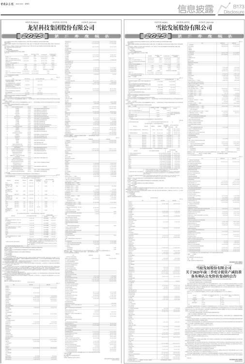 证券代码:002485 证券简称:ST雪发 公告编号:2025-030 本公司及董事会全体成员保证信息披露的内容真实、准确、完整,没有虚假记载、误导性陈述或重大遗漏。 重要内容提示: 1.董事会及董事、高级管理人员保证季度报告的真实、准确、完整,不存在虚假记载、误导性陈述或重大遗漏,并承担个别和连带的法律责任。 2.公司负责人、主管会计工作负责人及会计机构负责人(会计主管人员)声明:保证季度报告中财务信息的真实、准确、完整。 3.第三季度财务会计报告是否经过审计 □是 √否 一、主要财务数据 (一) 主要会计数据和财务指标 公司是否需追溯调整或重述以前年度会计数据 □是 √否 ■ (二) 非经常性损益项目和金额 √适用 □不适用 单位:元 ■ 其他符合非经常性损益定义的损益项目的具体情况: □适用 √不适用 公司不存在其他符合非经常性损益定义的损益项目的具体情况。 将《公开发行证券的公司信息披露解释性公告第1号一一非经常性损益》中列举的非经常性损益项目界定为经常性损益项目的情况说明 □适用 √不适用 公司不存在将《公开发行证券的公司信息披露解释性公告第1号一一非经常性损益》中列举的非经常性损益项目界定为经常性损益的项目的情形。 (三) 主要会计数据和财务指标发生变动的情况及原因 √适用 □不适用 ■ 二、股东信息 (一) 普通股股东总数和表决权恢复的优先股股东数量及前十名股东持股情况表 单位:股 ■ 持股5%以上股东、前10名股东及前10名无限售流通股股东参与转融通业务出借股份情况 □适用 √不适用 前10名股东及前10名无限售流通股股东因转融通出借/归还原因导致较上期发生变化 □适用 √不适用 (二) 公司优先股股东总数及前10名优先股股东持股情况表 □适用 √不适用 三、其他重要事项 √适用 □不适用 报告期内,公司将拥有的合肥商铺和荣成商铺按照市场价格对外出售,交易总金额为1,545.00万元。截至2025年9月30日,公司出售商铺的款项已全部收到,并已办理完毕过户手续。 报告期内,公司已对外出租7家已购置的商铺(包括滨州、合肥、阜阳、青岛、临沂、曲阜和荣成),共确认收入125.30万元。以上事项已经公司总经理办公会审议通过。 四、季度财务报表 (一) 财务报表 1、合并资产负债表 编制单位:雪松发展股份有限公司 2025年09月30日 单位:元 ■ 法定代表人:苏齐 主管会计工作负责人:倪振凤 会计机构负责人:倪振凤 2、合并年初到报告期末利润表 单位:元 ■ 本期发生同一控制下企业合并的,被合并方在合并前实现的净利润为:0.00元,上期被合并方实现的净利润为:0.00元。 法定代表人:苏齐 主管会计工作负责人:倪振凤 会计机构负责人:倪振凤 3、合并年初到报告期末现金流量表 单位:元 ■ (二) 2025年起首次执行新会计准则调整首次执行当年年初财务报表相关项目情况 □适用 √不适用 (三) 审计报告 第三季度财务会计报告是否经过审计 □是 √否 公司第三季度财务会计报告未经审计。 雪松发展股份有限公司董事会 2025年10月30日 证券代码:002485 证券简称:ST雪发 公告编号:2025-031 雪松发展股份有限公司 关于2025年前三季度计提资产减值准备及确认公允价值变动的公告 本公司及董事会全体成员保证信息披露的内容真实、准确、完整,没有虚假记载、误导性陈述或重大遗漏。 一、本次计提资产减值准备及确认公允价值变动情况概述 (一)本次计提资产减值准备及确认公允价值变动的原因 根据《企业会计准则》和《深圳证券交易所上市公司自律监管指引第1号一主板上市公司规范运作》相关规定的要求,为了更加真实、准确地反映公司的财务状况、资产价值及经营成果,基于谨慎性原则,公司对各类资产进行了全面清查和减值测试,对截至2025年9月30日合并报表范围内,可能发生资产减值损失的有关资产计提相应的减值准备;对以公允价值计量的投资性房地产,根据公司投资性房地产处置情况,确认公允价值变动损益。 (二)本次计提资产减值准备及确认公允价值变动的资产范围、总金额和计入的报告期间 2025年1-9月,公司计提各项资产减值损失-276.88万元,确认公允价值变动收益8,601.35万元,明细如下: 单位:万元 ■ 本次计提资产减值准备及确认公允价值变动计入的报告期间为2025年1月1日至2025年9月30日,包含2025年半年度已计提的资产减值准备及确认的公允价值变动。2025年半年度计提资产减值准备及确认公允价值变动情况详见公司于2025年8月30日在巨潮资讯网www.cninfo.com.cn及《中国证券报》《上海证券报》《证券日报》和《证券时报》披露的《关于2025年半年度计提资产减值准备及确认公允价值变动的公告》(公告编号:2025-028)。 (三)本次计提资产减值准备及确认公允价值变动的依据、数额和原因说明 1、金融工具(应收账款、其他应收款等)减值 本公司以预期信用损失为基础,对上述各项目按照其适用的预期信用损失计量方法(一般方法或简化方法)计提减值准备并确认信用减值损失。 对于划分为组合的应收账款,本公司参考历史信用损失经验,结合当前状况以及对未来经济状况的预测,编制应收账款账龄与整个存续期预期信用损失率对照表,计算预期信用损失。 对于划分为组合的其他应收款,本公司参照历史信用损失经验,结合当前状况以及对未来经济状况的预测,通过违约风险敞口和未来1
