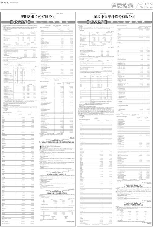 证券代码:600597 证券简称:光明乳业 本公司董事会及全体董事保证本公告内容不存在任何虚假记载、误导性陈述或者重大遗漏,并对其内容的真实性、准确性和完整性承担法律责任。 重要内容提示: 公司董事会、监事会及董事、监事、高级管理人员保证季度报告内容的真实、准确、完整,不存在虚假记载、误导性陈述或重大遗漏,并承担个别和连带的法律责任。 公司负责人、主管会计工作负责人及会计机构负责人(会计主管人员)保证季度报告中财务信息的真实、准确、完整。 第三季度财务报表是否经审计 □是 √否 一、主要财务数据 (一)主要会计数据和财务指标 单位:元 币种:人民币 ■ 注:“本报告期”指本季度初至本季度末3个月期间,下同。 (二)非经常性损益项目和金额 √适用 □不适用 单位:元 币种:人民币 ■ 对公司将《公开发行证券的公司信息披露解释性公告第1号一一非经常性损益》未列举的项目认定为非经常性损益项目且金额重大的,以及将《公开发行证券的公司信息披露解释性公告第1号一一非经常性损益》中列举的非经常性损益项目界定为经常性损益的项目,应说明原因。 □适用 √不适用 (三)主要会计数据、财务指标发生变动的情况、原因 √适用 □不适用 ■ 二、股东信息 (一)普通股股东总数和表决权恢复的优先股股东数量及前十名股东持股情况表 单位:股 ■ 上海益民食品一厂(集团)有限公司为光明食品(集团)有限公司一致行动人。上海益民食品一厂(集团)有限公司截止2025年9月30日持有公司股份数为1,350,724股,两者合计持有公司股份713,211,320股,占本公司总股本的51.74%。 持股5%以上股东、前10名股东及前10名无限售流通股股东参与转融通业务出借股份情况 □适用 √不适用 前10名股东及前10名无限售流通股股东因转融通出借/归还原因导致较上期发生变化 □适用 √不适用 三、其他提醒事项 需提醒投资者关注的关于公司报告期经营情况的其他重要信息 √适用 □不适用 2025年9月28日,公司第八届董事会第四次会议审议通过《关于新莱特出售新西兰北岛资产的议案》《关于新莱特开展远期外汇合约业务的议案》等议案(详见2025年9月29日《中国证券报》《上海证券报》《证券时报》及上海证券交易所网站www.sse.com.cn相关公告)。 四、季度财务报表 (一)审计意见类型 □适用 √不适用 (二)财务报表 合并资产负债表 2025年9月30日 编制单位:光明乳业股份有限公司 单位:元 币种:人民币 审计类型:未经审计 ■ 公司负责人:黄黎明 主管会计工作负责人:赵健福 会计机构负责人:章韬 合并利润表 2025年1一9月 编制单位:光明乳业股份有限公司 单位:元 币种:人民币 审计类型:未经审计 ■ 公司负责人:黄黎明 主管会计工作负责人:赵健福 会计机构负责人:章韬 合并现金流量表 2025年1一9月 编制单位:光明乳业股份有限公司 单位:元 币种:人民币 审计类型:未经审计 ■ 公司负责人:黄黎明 主管会计工作负责人:赵健福 会计机构负责人:章韬 2025年起首次执行新会计准则或准则解释等涉及调整首次执行当年年初的财务报表 □适用 √不适用 特此公告。 光明乳业股份有限公司董事会 董事长:黄黎明 2025年10月30日 证券代码:600597 证券简称:光明乳业 公告编号:临2025-034号 光明乳业股份有限公司 关于参加2025年上海辖区上市公司三季报集体业绩说明会的公告 本公司董事会及全体董事保证本公告内容不存在任何虚假记载、误导性陈述或者重大遗漏,并对其内容的真实性、准确性和完整性承担法律责任。 重要内容提示: ●会议召开时间:2025年11月13日(星期四)15:00至16:30 ●网络互动地址:登录“上证路演中心”网站(http://roadshow.sseinfo.com) ●会议召开方式:网络文字交流 ●预征集投资者提问:投资者可于2025年11月6日(星期四)至11月12日(星期三)16:00前登录上证路演中心网站首页点击“提问预征集”栏目或通过公司邮箱600597@brightdairy.com进行提问。公司将在说明会上对投资者普遍关注的问题进行回答。 为进一步加强与广大投资者的沟通交流,光明乳业股份有限公司(以下简称“公司”)将于2025年11月13日(星期四)15:00至16:30参加2025年上海辖区上市公司三季报集体业绩说明会活动,就投资者关心的问题进行交流。 一、活动类型 本次业绩说明会以网络文字交流方式召开,公司将针对2025年前三季度的经营情况与投资者进行互动交流和沟通,在信息披露允许的范围内就投资者普遍关注的问题进行回答。 二、召开的时间、地点 会议召开时间:2025年11月13日(星期四)15:00至16:30 网络互动地址:登录“上证路演中心”网站(http://roadshow.sseinfo.com) 会议召开方式:网络文字交流 三、参加人员 公司党委书记、董事长:黄黎明先生,党委副书记、董事、总经理:贲敏女士,独立董事:高丽女士,财务总监:赵健福先生,董事会秘书:沈小燕女士。 四、投资者参加方式 投资者可于2025年11月13日(星期四)15:00至16:30登录“上证路演中心”网站(http://roadshow.sseinfo.com)参与活动,公司将及时回答投资者的提问。 投资者可于2025年11月6日(星期四)至11月12日(星期三)16:00前登录上证路演中心网站首页点击“提问预征集”栏目或通过公司邮箱600597@brightdairy.com进行提问。公司将在说明会上对投资者普遍关注的问题进行回答。 五、联系人及联系方式 联系人:张珂怡 电话:(8621)64655801 邮箱:600597@brightdairy.com 