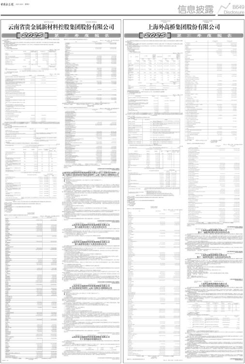 证券代码:600459 证券简称:贵研铂业 本公司董事会及全体董事保证本公告内容不存在任何虚假记载、误导性陈述或者重大遗漏,并对其内容的真实性、准确性和完整性承担法律责任。 重要内容提示: 公司董事会、监事会及董事、监事、高级管理人员保证季度报告内容的真实、准确、完整,不存在虚假记载、误导性陈述或重大遗漏,并承担个别和连带的法律责任。 公司负责人、主管会计工作负责人及会计机构负责人(会计主管人员)保证季度报告中财务信息的真实、准确、完整。 第三季度财务报表是否经审计 □是 √否 一、主要财务数据 (一)主要会计数据和财务指标 单位:元 币种:人民币 ■ 注:“本报告期”指本季度初至本季度末3个月期间,下同。 (二)非经常性损益项目和金额 √适用 □不适用 单位:元 币种:人民币 ■ 对公司将《公开发行证券的公司信息披露解释性公告第1号一一非经常性损益》未列举的项目认定为非经常性损益项目且金额重大的,以及将《公开发行证券的公司信息披露解释性公告第1号一一非经常性损益》中列举的非经常性损益项目界定为经常性损益的项目,应说明原因。 □适用 √不适用 (三)主要会计数据、财务指标发生变动的情况、原因 √适用 □不适用 ■ 二、股东信息 (一)普通股股东总数和表决权恢复的优先股股东数量及前十名股东持股情况表 单位:股 ■ 持股5%以上股东、前10名股东及前10名无限售流通股股东参与转融通业务出借股份情况 □适用 √不适用 前10名股东及前10名无限售流通股股东因转融通出借/归还原因导致较上期发生变化 □适用 √不适用 三、其他提醒事项 需提醒投资者关注的关于公司报告期经营情况的其他重要信息 □适用 √不适用 四、季度财务报表 (一)审计意见类型 □适用 √不适用 (二)财务报表 合并资产负债表 2025年9月30日 编制单位:云南省贵金属新材料控股集团股份有限公司 单位:元 币种:人民币 审计类型:未经审计 ■ 公司负责人:王建强 主管会计工作负责人:龙运江 会计机构负责人:陈丽 合并利润表 2025年1一9月 编制单位:云南省贵金属新材料控股集团股份有限公司 单位:元 币种:人民币 审计类型:未经审计 ■ 本期发生同一控制下企业合并的,被合并方在合并前实现的净利润为:0元, 上期被合并方实现的净利润为:0元。 公司负责人:王建强 主管会计工作负责人:龙运江 会计机构负责人:陈丽 合并现金流量表 2025年1一9月 编制单位:云南省贵金属新材料控股集团股份有限公司 单位:元 币种:人民币 审计类型:未经审计 ■ 公司负责人:王建强 主管会计工作负责人:龙运江 会计机构负责人:陈丽 2025年起首次执行新会计准则或准则解释等涉及调整首次执行当年年初的财务报表 □适用 √不适用 特此公告。 云南省贵金属新材料控股集团股份有限公司董事会 2025年10月31日 证券简称:贵研铂业 证券代码:600459 公告编号:临2025-057号 云南省贵金属新材料控股集团股份有限公司关于贵研化学材料(云南)有限公司向贵研化学绿色新材料(云南)有限公司增资的公告 本公司董事会及全体董事保证本公告内容不存在任何虚假记载、误导性陈述或者重大遗漏,并对其内容的真实性、准确性和完整性承担个别及连带责任。 重要内容提示: ● 增资标的名称:贵研化学绿色新材料(云南)有限公司(以下简称“贵研绿新公司”); ● 增资金额:10,000.00万元。 一、本次增资概述 (一)增资基本情况 为推动公司在贵金属化工新材料业务板块实现跨越式发展,公司全资子公司贵研化学材料(云南)有限公司(以下简称“贵研化学公司”)拟向其全资子公司贵研化学绿色新材料(云南)有限公司(以下简称“贵研绿新公司”)增资,助力其在安宁市工业园区草铺化工园区禄脿片区打造贵金属绿色化工新材料产业园(以下简称“安宁产业园”),布局建设云南省贵金属绿色新材料产业园区及入园项目,进一步促进稀贵金属新材料产业集群规模化、高端化、绿色化发展。 (二)董事会审议表决情况 2025年10月30日,公司第八届董事会第十七次会议审议通过了《关于贵研化学材料(云南)有限公司向贵研化学绿色新材料(云南)有限公司增资的议案》。根据《上海证券交易所股票上市规则》及《公司章程》的相关规定,本次投资事项无需提交股东大会审议。 (三)本次投资事项不构成关联交易,也不构成《上市公司重大资产重组管理办法》规定的重大资产重组。 二、增资标的方基本情况 (一)公司名称:贵研化学绿色新材料(云南)有限公司 (二)注册资本:人民币3,000.00万元 (三)法定代表人:侯文明 (四)公司类型:有限责任公司(非自然人投资或控股的法人独资) (五)注册地址:云南省昆明市安宁市禄脿街道安宁产业园区化工园区西区 (六)经营范围:一般项目:专用化学产品制造(不含危险化学品);新型催化材料及助剂销售;新材料技术研发;电子专用材料制造;基础化学原料制造(不含危险化学品等许可类化学品的制造);金属材料销售;货物进出口;技术进出口;技术服务、技术开发、技术咨询、技术交流、技术转让、技术推广;租赁服务(不含许可类租赁服务);非居住房地产租赁。(除依法须经批准的项目外,凭营业执照依法自主开展经营活动)。 (七)股权结构:贵研化学公司持有100%股权。 三、增资方式和金额 以货币出资方式增资,增资金额为10,000.00万元,本次增资按照《公