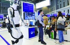 图为11月9日,工作人员(左)在向参观者介绍一款外骨骼产品。本届进博会创新孵化专区以“在中国,切入新赛道”为主题,为参会全球初创企业和人才共同探索开拓中国市场提供科技创新资源与合作机遇。 新华社图文