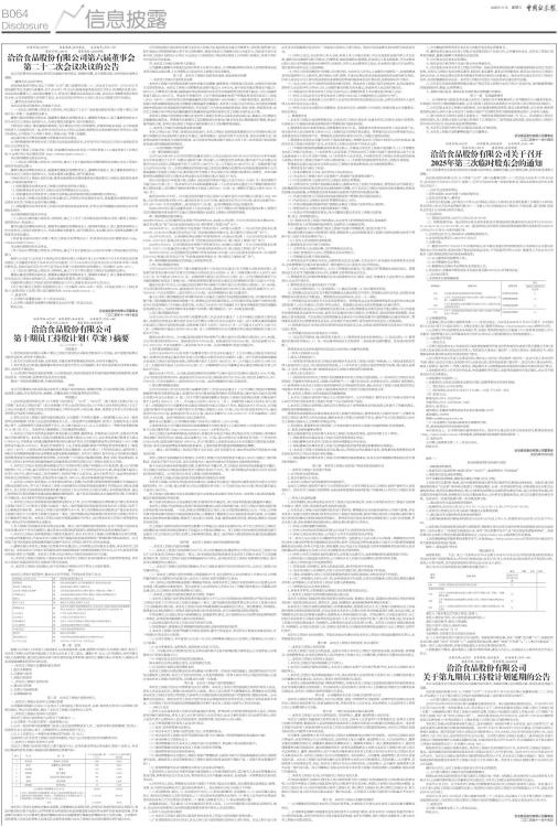 洽洽食品股份有限公司第六届董事会第二十二次会议决议的公告