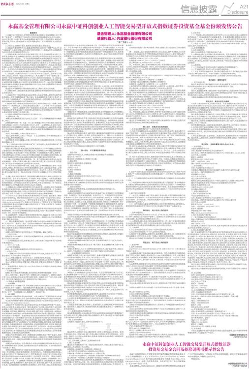 永赢基金管理有限公司永赢中证科创创业人工智能交易型开放式指数证券投资基金基金份额发售公告