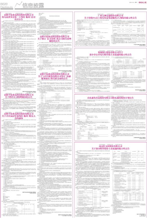 本公司及董事会全体成员保证信息披露的内容真实、准确和完整,没有虚假记载、误导性陈述或重大遗漏。 特别提示: 1、本次解除限售股份的数量为121,666,666股,占公司目前总股本(1,303,158,541股)的9.3363%。 2、本次解除限售股份的上市流通日期为2025年11月27日(星期四)。 3、本次申请解除股份限售的股东户数共10户。 一、本次解除限售股份基本情况 2024年9月13日,南京市中级人民法院(以下简称“南京中院”)裁定受理申请人南京太化化工有限公司对南京红太阳股份有限公司(以下简称“公司”)的重整申请。同日,南京中院指定江苏世纪同仁律师事务所为公司重整工作管理人。具体详见公司于2024年9月18日披露的《关于法院裁定受理公司重整并指定管理人的公告》。 2024年10月16日,公司及管理人与云南合奥产业合伙企业(有限合伙)(云南合奥产业合伙企业(有限合伙)是公司重整战略投资人曲靖高新技术产业开发区建设投资有限责任公司指定的投资主体。)签署《重整战略投资人投资协议书》;同日,公司及管理人分别与共青城胜恒投资管理有限公司、芜湖跃益企业管理中心(有限合伙)(芜湖跃益企业管理中心(有限合伙)是公司重整财务投资人国厚资产管理股份有限公司指定的投资主体。)、北京博雅春芽投资有限公司签署《重整财务投资人投资协议书》。具体详见公司于2024年10月17日披露的《关于签署重整投资协议的公告》。 2024年10月16日,公司重整阶段第一次债权人会议召开,本次会议涉及《关于设立债权人委员会及债权人委员会议事规则的议案》《债务人财产管理方案》《重整计划草案》《非现场议事表决规则》四项表决事项。根据相关债权人申请,并经南京中院同意,上述表决事项的表决期限至2024年10月23日24:00截止。具体详见公司于2024年10月17日披露的《关于重整阶段第一次债权人会议召开情况的公告》。 2024年10月23日,公司出资人组会议及2024年第一次临时股东大会召开,本次会议表决通过了《南京红太阳股份有限公司重整计划草案之出资人权益调整方案》等议案。具体详见公司于2024年10月24日披露的《出资人组会议及2024年第一次临时股东大会决议公告》。 2024年10月30日,公司披露《关于重整阶段第一次债权人会议表决结果的公告》,公司重整阶段第一次债权人会议涉及的《关于设立债权人委员会及债权人委员会议事规则的议案》《债务人财产管理方案》《非现场议事表决规则》《重整计划草案》四项议案,均已经本次债权人会议各表决组表决通过。同日,公司披露《南京红太阳股份有限公司重整计划草案》和《南京红太阳股份有限公司重整计划草案之经营方案》。 2024年11月1日,南京中院裁定批准《南京红太阳股份有限公司重整计划》,并终止公司重整程序。具体详见公司于2024年11月2日披露的《关于公司重整计划获得法院裁定批准的公告》。 截至2024年11月7日,公司管理人账户已收到全体重整投资人支付全部重整投资款合计14.57亿元。其中,战略投资人支付投资款8.00亿元;财务投资人支付投资款6.57亿元。具体详见公司于2024年11月8日披露的《关于提前收到重整投资人全部重整投资款的公告》。 2024年11月20日,公司披露《关于重整计划资本公积金转增股本事项实施进展的公告》,公司为执行重整计划实际转增717,254,468股,公司总股本由580,772,873股增至1,298,027,341股。其中,转增的股票中525,371,410股全部登记至管理人专用账户,后续将由管理人根据重整计划的规定分配。 2024年11月27日,管理人将307,713,178股转增股票由管理人专用账户过户至重整投资人指定的证券账户。其中,向战略投资人指定的证券账户划转合计186,046,512股,向财务投资人指定的证券账户划转合计121,666,666股。划转完成后,财务投资人持股情况如下: ■ 2024年12月6日,南京中院裁定确认公司重整计划执行完毕,并终结公司重整程序。具体详见公司于2024年12月10日披露的《关于法院裁定确认公司重整计划执行完毕的公告》。 二、本次限售股形成后至今公司股本数量变化情况 2025年9月,公司启动了2025年限制性股票激励计划,董事会确定以2025年11月11日为授予日向214名激励对象定向发行5,131,200股新股,该等股份于2025年11月20日在深圳证券交易所上市,本次发行结束后,公司总股本由1,298,027,341股增加至1,303,158,541股。除前述情况外,公司未发生导致股本变动的情形。 三、本次解除限售股份的股东承诺及履行情况 根据相关规定及重整相关安排,财务投资人共青城胜恒投资管理有限公司、国厚资产管理股份有限公司和北京博雅春芽投资有限公司及其指定主体自取得转增股票之日(2024年11月27日)起12个月内不转让或者委托他人管理其所持有的公司股票。具体情况如下: ■ 截至本公告出具日,本次申请解除限售股份的股东严格履行了上述承诺,未出现违反上述承诺的情形。本次限售对象所持的限售股份达到股份解锁条件。 四、本次申请解除限售股份股东对上市公司的非经营资金占用、上市公司对该股东违规担保等情况 本次解除限售股份股东不存在对公司的非经营性资金占用,不存在公司对上述股东提供违规担保等损害上市公司利益行为的情况。 五、本次解除限售股份上市流通安排 1、本次解除限售股份的数量为121,666,666股,占公司目前总股本(1,303,158,541股)的9.3363%。 2、本次解除限售股份的上