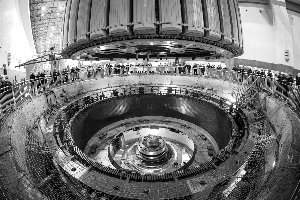 这是11月30日在检修现场拍摄的被起吊的发电机组转子。 近日,福建水口水电站5号机组开始大修,计划总工期175天,主要任务为升级原有发电机组定子、转子、水轮机转轮等重要组件。 水口水电站拥有7台发电机组,承担福建乃至华东电网的调峰调频、事故备用、闽江防洪防汛和通航等重要任务。近几年来,水口水电站先后对7台发电机组进行增容改造,5号机是增容改造的最后一台。 新华社图文