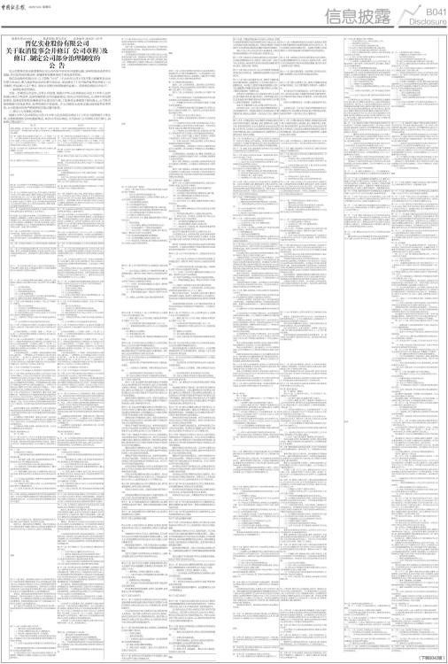 股票代码:601002 股票简称:晋亿实业 公告编号:临2025-027号 晋亿实业股份有限公司 关于取消监事会并修订《公司章程》及修订、制定公司部分治理制度的 公 告 本公司董事会及全体董事保证本公告内容不存在任何虚假记载、误导性陈述或者重大遗漏,并对其内容的真实性、准确性和完整性承担个别及连带责任。 晋亿实业股份有限公司(以下简称“公司”)于2025年12月3日召开第八届董事会2025年第五次会议,第八届监事会2025年第五次会议,审议通过了《关于取消监事会并修订〈公司章程〉的议案》《关于修订、制定公司部分治理制度的议案》。现将相关情况公告如下: 一、取消监事会的情况 为进一步规范公司运作,完善公司治理,根据《中华人民共和国公司法》《中华人民共和国证券法》等法律、法规和规范性文件的最新规定,结合公司实际情况,公司将不再设置监事会,监事会的职权由董事会审计委员会行使,《监事会议事规则》相应废止,公司各项规章制度中涉及监事会、监事的规定不再适用。在公司股东大会审议通过取消监事会事项前,公司监事会仍将严格按照相关规定履行职责。 二、修订《公司章程》的情况 根据《中华人民共和国公司法》《中华人民共和国证券法》《上市公司章程指引》等法律、法规和规范性文件的最新规定,结合公司实际情况,公司拟对《公司章程》进行修订,具体修订情况如下: ■ ■ ■ ■ ■ ■ ■ ■ ■ ■ ■