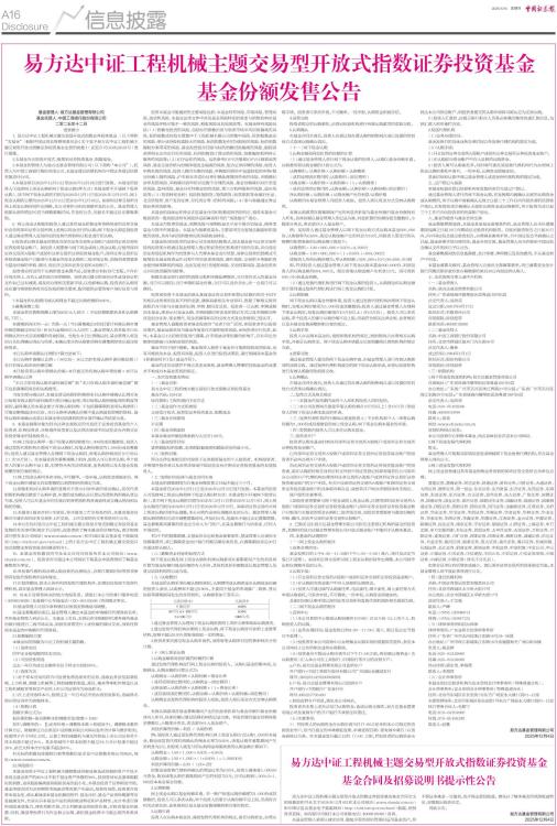 易方达中证工程机械主题交易型开放式指数证券投资基金基金合同全文和招募说明书全文于2025年12月4日在本公司网站(www.efunds.com.cn)和中国证监会基金电子披露网站(http://eid.csrc.gov.cn/fund)披露,供投资者查阅。如有疑问可拨打本公司客服电话(4008818088)咨询。 本基金管理人承诺以诚实信用、勤勉尽责的原则管理和运用基金资产,但不保证本基金一定盈利,也不保证最低收益。请充分了解本基金的风险收益特征,审慎做出投资决定。 特此公告。 易方达基金管理有限公司 2025年12月4日
