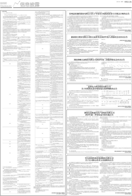 本公司及董事会全体成员保证信息披露的内容真实、准确、 完整,没有虚假记载、误导性陈述或重大遗漏。 湖南达嘉维康医药产业股份有限公司(以下简称“公司”或“本公司”)2025年前三季度权益分派方案已获2025年11月13日召开的2025年第三次临时股东会审议通过,现将权益分派事宜公告如下: 一、股东会审议通过权益分派方案情况 1、公司于2025年11月13日召开2025年第三次临时股东会审议通过了《关于2025年前三季度利润分配预案的议案》,同意公司以截至2025年9月30日公司总股本205,403,200股为基数,向全体股东每10股派发现金红利人民币0.22元(含税),共计派送现金红利人民币4,518,870.40元(含税),本次利润分配不送红股,不以资本公积金转增股本,剩余未分配利润结转以后年度分配。公司利润分配方案公布后至实施前,公司总股份如因增发新股、公司回购股份、股权激励行权等原因发生变动,公司将按照分配总额不变的原则对分配比例进行调整。 2、本次权益分派方案披露至实施期间,公司总股本未发生变化。 3、本次实施的权益分派方案与2025年第三次临时股东会审议通过的及其调整原则一致。 4、本次实施权益分派方案距离股东会审议通过的时间未超过两个月。 二、 本次实施的权益分派方案 本公司2025年前三季度权益分派方案为:以公司现有总股本205,403,200股为基数,向全体股东每10股派0.2200元人民币现金(含税;扣税后,境外机构(含QFII、RQFII)以及持有首发前限售股的个人和证券投资基金每10股派0.1980元;持有首发后限售股、股权激励限售股及无限售流通股的个人股息红利税实行差别化税率征收,本公司暂不扣缴个人所得税,待个人转让股票时,根据其持股期限计算应纳税额【注】;持有首发后限售股、股权激励限售股及无限售流通股的证券投资基金所涉红利税,对香港投资者持有基金份额部分按10%征收,对内地投资者持有基金份额部分实行差别化税率征收)。 【注:根据先进先出的原则,以投资者证券账户为单位计算持股期限,持股1个月(含1个月)以内,每10股补缴税款0.0440元;持股1个月以上至1年(含1年)的,每10股补缴税款0.0220元;持股超过1年的,不需补缴税款。】 三、股权登记日与除权除息日 本次权益分派股权登记日为:2025年12月12日,除权除息日为:2025年12月15日。 四、 权益分派对象 本次分派对象为:截止2025年12月12日下午深圳证券交易所收市后,在中国证券登记结算有限责任公司深圳分公司(以下简称“中国结算深圳分公司”)登记在册的本公司全体股东。 五、权益分派方法 1、本公司此次委托中国结算深圳分公司代派的A股股东现金红利将于2025年12月15日通过股东托管证券公司(或其他托管机构)直接划入其资金账户。 2、以下A股股东的现金红利由本公司自行派发: ■ 在权益分派业务申请期间(申请日:2025年12月4日至登记日:2025年12月12日),如因自派股东证券账户内股份减少而导致委托中国结算深圳分公司代派的现金红利不足的,一切法律责任与后果由我公司自行承担。 六、调整相关参数 1、公司《首次公开发行股票并在创业板上市公告书》中相关股东承诺如果在股份锁定期满后两年内减持股份的,减持价格不低于公司首次公开发行价格。如因派发现金红利、送股、转增股本、增发新股等原因进行除权、除息的,须按照有关规定做复权处理。本次权益分派实施后,上述承诺的最低减持价格作出相应调整,调整后的最低减持价格为12.1680元/股。 2、本次权益分派实施完毕后,公司将根据《湖南达嘉维康医药产业股份有限公司2023年限制性股票与股票期权激励计划(草案)》的规定,对限制性股票授予价格及行权价格进行调整,届时董事会将对调整事项进行审议并及时公告。 七、咨询机构 咨询地址:湖南省长沙市岳麓区茯苓路30号 咨询联系人:蒋茜、罗梓源 咨询电话:0731-84170075 传真电话:0731-84170075 八、 备查文件 1、第四届董事会第十七次会议决议; 2、2025年第三次临时股东会决议; 3、中国证券登记结算有限责任公司深圳分公司确认有关分红派息具体时间安排的文件。 特此公告。 湖南达嘉维康医药产业股份有限公司董事会 2025年12月5日
