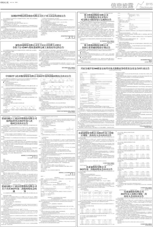 证券代码:002594 证券简称:比亚迪 公告编号:2025-065 比亚迪股份有限公司2024年员工持股计划第二次持有人会议决议公告 本公司及董事会全体成员保证信息披露的内容真实、准确、完整,没有虚假记载、误导性陈述或重大遗漏。 比亚迪股份有限公司(以下简称“公司”)2024年员工持股计划(以下简称“本员工持股计划”)第二次持有人会议(以下简称“本次会议”)于2025年12月5日以通讯表决的方式召开。本次会议出席持有人共计92人,代表本员工持股计划份额170,920,000份,占公司本员工持股计划总份额的86.67%。 本次会议由管理委员会召集,管理委员会主任李黔先生主持。本次会议的召集、召开和表决程序符合相关法律法规和《比亚迪股份有限公司2024年员工持股计划管理办法》的相关规定。与会持有人经过审议,以记名投票方式通过了如下决议: 《关于调整比亚迪股份有限公司2024年员工持股计划管理委员会委员的议案》 表决结果:同意170,920,000份,占出席持有人会议的持有人所持份额总数的86.67%;反对0份,占出席持有人会议的持有人所持份额总数的0%;弃权26,290,000份,占出席持有人会议的持有人所持份额总数的13.33%。 王珍女士因工作调整,不再担任本员工持股计划管理委员会委员职务。为了保障本员工持股计划的整体利益,现改选叶子先生为本员工持股计划管理委员会委员,任期为本次会议审议通过之日起至本员工持股计划存续期届满之日止。 叶子先生将与李黔先生、李巍女士共同组成本员工持股计划管理委员会。 叶子先生不是持有公司5%以上股份的股东或实际控制人,未在公司控股股东或者实际控制人单位担任职务,与持有上市公司5%以上股份的股东、实际控制人之间不存在关联关系。叶子先生未在公司担任董事、高级管理人员职务,与公司现任董事、高级管理人员之间不存在关联关系。 备查文件: 比亚迪股份有限公司2024年员工持股计划第二次持有人会议决议。 特此公告。 比亚迪股份有限公司董事会 2025年12月5日 证券代码:002594 证券简称:比亚迪 公告编号:2025-064 比亚迪股份有限公司 2025年第二次临时股东会决议公告 本公司及董事会全体成员保证信息披露的内容真实、准确、完整,没有虚假记载、误导性陈述或重大遗漏。 特别提示: 1、本次股东会未出现否决提案的情形。 2、本次股东会不涉及变更以往股东会已通过的决议。 一、会议召开基本情况 1、会议召开时间:2025年12月5日(星期五)上午10:00。 2、会议召开地点:广东省深圳市坪山区比亚迪路3009号公司会议室。 3、会议召开方式:现场表决和网络投票相结合的方式。 4、会议召集人:比亚迪股份有限公司(以下简称“公司”、“本公司”)董事会。 5、会议主持人:王传福先生。 6、本公司于2025年11月13日在《证券时报》、《中国证券报》、《上海证券报》、《证券日报》和巨潮资讯网(www.cninfo.com.cn)刊发了股东会通知,也在香港联合交易所有限公司网站(www.hkex.com.hk)刊发了临时股东会通告,并按规定派发了通函。 7、本次会议的召集和召开程序符合《中华人民共和国公司法》、《上市公司股东会规则》等有关法律、法规、部门规章、规范性文件及《公司章程》的规定。 二、会议出席情况 1、股东出席情况如下: ■ 2、出席、列席本次股东会的其他人员包括公司部分董事、部分监事、部分高级管理人员及香港中央证券有限公司监票人、北京市中伦(深圳)律师事务所见证律师。 三、提案的审议和表决情况: 本次股东会采用现场投票、网络投票相结合的方式对列入会议议题的2项议案进行了表决,表决结果如下: 1.00、关于修订《公司章程》的议案 表决结果:通过。 表决情况: ■ 该议案属于特别决议案,已经出席会议有表决权股东所持股份总数的三分之二以上通过。 2.00、关于修订公司部分治理制度(股东会审议通过生效)的议案: 2.01、关于修订《股东会议事规则》的议案 表决结果:通过。 表决情况: ■ 该议案属于特别决议案,已经出席会议有表决权股东所持股份总数的三分之二以上通过。 2.02、关于修订《董事会议事规则》的议案 表决结果:通过。 表决情况: ■ 该议案属于特别决议案,已经出席会议有表决权股东所持股份总数的三分之二以上通过。 2.03、关于修订《募集资金管理制度》的议案 表决结果:通过。 表决情况: ■ 该议案属于普通决议案,已经出席会议有表决权股东所持股份总数的过半数通过。 2.04、关于修订《关联交易决策制度》的议案 表决结果:通过。 表决情况: ■ 该议案属于普通决议案,已经出席会议有表决权股东所持股份总数的过半数通过。 2.05、关于修订《会计师事务所选聘制度》的议案 表决结果:通过。 表决情况: ■ 该议案属于普通决议案,已经出席会议有表决权股东所持股份总数的过半数通过。 2.06、关于修订《对外担保制度》的议案 表决结果:通过。 表决情况: ■ 该议案属于普通决议案,已经出席会议有表决权股东所持股份总数的过半数通过。 四、律师见证情况 本次股东会经北京市中伦(深圳)律师事务所律师见证,并出具了法律意见,认为公司本次股东会的召集、召开程序符合法律、行政法规、《上市公司股东会规则》和《公司章程》的规定;出席本次股东会现场会议的人员资格及召集人资格合法有效;本次股东会的表决程序、表决结果合法有效。 五、备查文