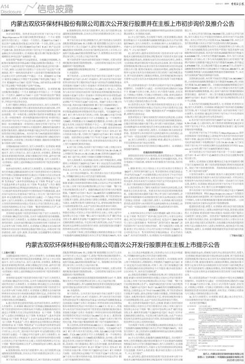 内蒙古双欣环保材料股份有限公司首次公开发行股票并在主板上市初步询价及推介公告