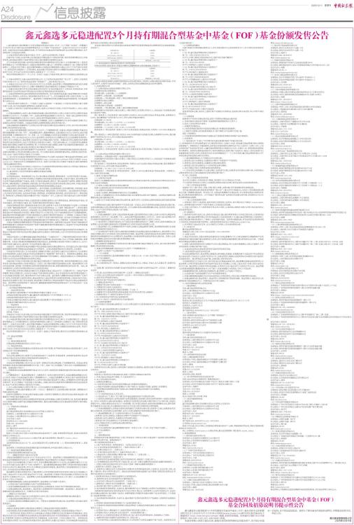 鑫元鑫选多元稳进配置3个月持有期混合型基金中基金(FOF)基金份额发售公告