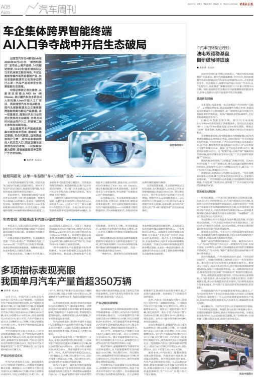 当理想汽车的AI眼镜Livis在2025年12月3日的“理想科技日”发布会上揭开面纱,36克超轻镜架、18.8小时超长续航以及与车机深度互联的特性,不仅让智能穿戴市场再添重磅产品,也标志着新能源车企的竞争边界已从单一汽车产品延伸至全场景智能生态领域。 中国证券报记者注意到,从蔚来此前推出NIO Air AR Glasses,到小鹏汽车自主研发AI人形机器人Iron并投入工厂实训,再到理想汽车布局AI眼镜,国内头部新能源车企正集体跨界智能穿戴与数码产品赛道。这一现象背后,既是对汽车行业同质化竞争的主动破局,也是在AI时代抢占用户入口、开辟第二增长曲线的战略布局。 正如理想汽车产品部高级副总裁范皓宇所言,眼镜因“靠近眼睛、耳朵和嘴巴,且无需改变用户习惯”,成为目前最自然的人机交互入口,而这正是车企跨界的核心逻辑——以智能设备为纽带,将座舱智能延伸至用户生活全链路。