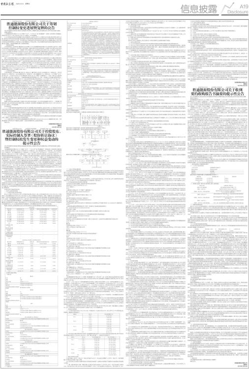胜通能源股份有限公司关于筹划 控制权变更进展暨复牌的公告 |