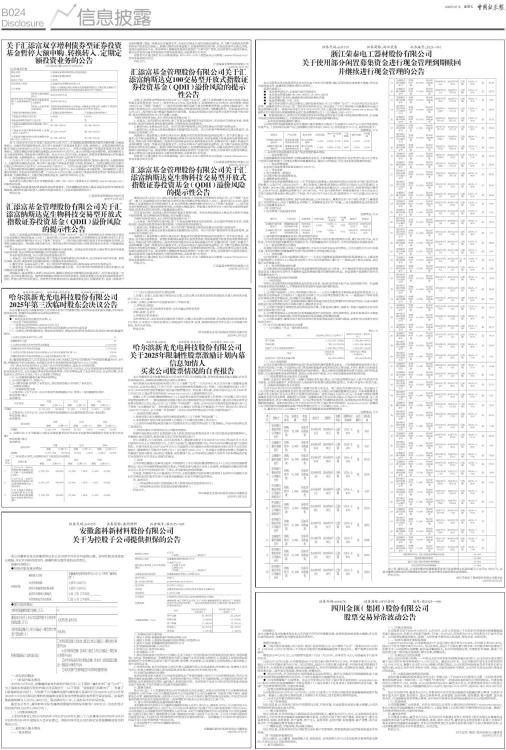 公告送出日期:2025年12月12日 1公告基本信息 ■ 注:1、自2025年12月15日起(含2025年12月15日),汇添富双享增利债券A暂停大额申购、大额转换转入、大额定期定额投资业务,单日单个基金账户单笔或多笔累计申购、转换转入、定期定额投资的金额不应超过80000000人民币元(含80000000人民币元)。当单日某基金账户单笔或多笔累计申购、转换转入、定期定额投资该份额的金额超过80000000人民币元,本公司将部分或全部拒绝。该份额暂停上述大额业务期间,其他业务仍照常办理。自2025年12月23日起,本基金汇添富双享增利债券A将恢复办理大额申购、大额转换转入、大额定期定额投资业务,届时将不再另行公告。 2、自2025年12月15日起(含2025年12月15日),汇添富双享增利债券C暂停大额申购、大额转换转入、大额定期定额投资业务,单日单个基金账户单笔或多笔累计申购、转换转入、定期定额投资的金额不应超过80000000人民币元(含80000000人民币元)。当单日某基金账户单笔或多笔累计申购、转换转入、定期定额投资该份额的金额超过80000000人民币元,本公司将部分或全部拒绝。该份额暂停上述大额业务期间,其他业务仍照常办理。自2025年12月23日起,本基金汇添富双享增利债券C将恢复办理大额申购、大额转换转入、大额定期定额投资业务,届时将不再另行公告。 2 其他需要提示的事项 投资者可以通过拨打本公司客服热线(400-888-9918)或登录本公司网站(www.99fund.com)获取相关信息。 汇添富基金高度重视投资者服务和投资者教育,特此提醒投资者需正确认知基金投资的风险和长期收益,做理性的基金投资人,做明白的基金投资人,享受长期投资的快乐! 特此公告。 汇添富基金管理股份有限公司 2025年12月12日 汇添富基金管理股份有限公司关于汇添富纳斯达克生物科技交易型开放式指数证券投资基金(QDII)溢价风险的提示性公告 近期,汇添富基金管理股份有限公司(以下简称“本公司”)旗下汇添富纳斯达克生物科技交易型开放式指数证券投资基金(QDII)(基金代码:513290,基金简称:汇添富纳斯达克生物科技ETF,扩位证券简称:纳指生物科技ETF;以下简称“本基金”)二级市场交易价格明显高于基金份额参考净值,出现较大幅度溢价。特此提示投资者关注二级市场交易价格溢价风险,投资者如果盲目投资,可能遭受重大损失。 若本基金后续二级市场交易价格溢价幅度未有效回落,本基金有权采取向上海证券交易所申请盘中临时停牌、延长停牌时间等措施以向市场警示风险。 为保护投资者利益,本公司特向投资者提示如下: 1、本基金二级市场的交易价格,除了有基金份额净值变化的风险外,还会受到市场供求关系、系统性风险、流动性风险等其他因素的影响,可能使投资者面临损失。 2、截至目前,本基金运作正常。本公司仍将严格按照法律法规及基金合同进行投资运作。 3、截至目前,本基金无其他应披露而未披露的重大信息。本公司仍将严格按照有关规定和要求,及时做好信息披露工作。 风险提示:基金管理人承诺以诚实信用、勤勉尽责的原则管理和运用基金资产,但不保证基金一定盈利,也不保证最低收益。销售机构根据法规要求对投资者类别、风险承受能力和基金的风险等级进行划分,并提出适当性匹配意见。投资者在投资基金前应认真阅读基金合同、招募说明书(更新)和基金产品资料概要(更新)等基金信息披露文件,全面认识基金产品的风险收益特征,在了解产品情况及销售机构适当性意见的基础上,根据自身的风险承受能力、投资期限和投资目标,对基金投资作出独立决策,选择合适的基金产品。基金管理人提醒投资者基金投资的“买者自负”原则,在投资者作出投资决策后,基金运营状况与基金净值变化引致的投资风险,由投资者自行负责。 投资者可以通过拨打本公司客服热线(400-888-9918)或登录本公司网站(www.99fund.com)咨询本基金相关信息。 特此公告。 汇添富基金管理股份有限公司 2025年12月12日 汇添富基金管理股份有限公司关于汇添富纳斯达克100交易型开放式指数证券投资基金(QDII)溢价风险的提示性公告 近期,汇添富基金管理股份有限公司(以下简称“本公司”)旗下汇添富纳斯达克100交易型开放式指数证券投资基金(QDII)(基金代码:159660,基金简称:汇添富纳斯达克100ETF,场内简称:纳指100ETF;以下简称“本基金”)二级市场交易价格明显高于基金份额参考净值,出现较大幅度溢价。特此提示投资者关注二级市场交易价格溢价风险,投资者如果盲目投资,可能遭受损失。若本基金2025年12月12日二级市场交易价格溢价幅度未有效回落,本基金有权通过向深圳证券交易所申请盘中临时停牌、延长停牌时间的方式,向市场警示风险。 为保护投资者利益,本公司特向投资者提示如下: 1、本基金二级市场的交易价格,除了有基金份额净值变化的风险外,还会受到市场供求关系、系统性风险、流动性风险等其他因素的影响,可能使投资者面临损失。 2、截至目前,本基金运作正常。本公司仍将严格按照法律法规及基金合同进行投资运作。 3、截至目前,本基金无其他应披露而未披露的重大信息。本公司仍将严格按照有关规定和要求,及时做好信息披露工作。 风险提示:基金管理人承诺以诚实信用、勤勉尽责的原则管理和运用基金资产,但不保证基金一定盈利,也不保证最低收益。销售机构根据法规