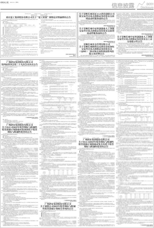 证券代码:603043 证券简称:广州酒家 公告编号:2025-073 广州酒家集团股份有限公司 第四届董事会第三十九次会议决议公告 本公司董事会及全体董事保证本公告内容不存在任何虚假记载、误导性陈述或者重大遗漏,并对其内容的真实性、准确性和完整性承担法律责任。 重要内容提示: ● 全体董事出席本次董事会。 ● 本次会议议案均获通过。 一、董事会会议召开情况 广州酒家集团股份有限公司(以下简称“公司”)第四届董事会第三十九次会议于2025年12月8日发出会议通知,于2025年12月11日在公司1号会议室以现场与通讯结合会议的方式召开。会议由董事长徐伟兵先生主持,会议应参加表决董事7人,实际表决董事7人(赵利平董事、刘火旺董事、樊霞董事以通讯表决的方式出席会议),公司部分高级管理人员列席会议。本次会议的召集、召开符合《公司法》《公司章程》等有关规定,表决形成的决议合法、有效。本次会议没有董事对议案投反对/弃权票。本次会议议案均获通过。 二、董事会会议审议情况 (一)《关于调整公司2025年股票期权与限制性股票激励计划相关事项的议案》 表决结果:通过(有权表决票数7票,同意7票,反对0票,弃权0票)。 公司于2025年4月22日召开2024年年度股东大会审议通过《公司2024年度利润分配的议案》,向全体股东每10股派发现金红利4.80元(含税);公司于2025年11月18日召开2025年第二次临时股东大会审议通过《公司2025年前三季度利润分配的议案》,向全体股东每10股派发现金红利1.00元(含税)。鉴于2024年度权益分派已实施完毕、2025年前三季度权益分派已通过公司股东大会审议并计划于近期实施,根据公司《2025年股票期权与限制性股票激励计划(草案)》(以下简称“《激励计划(草案)》”)的规定,股票期权行权价格由16.05元/份调整为15.47元/份,限制性股票授予价格由8.83元/股调整为8.25元/股。 鉴于首次授予激励对象中18名因离职、不再适合参与激励计划、个人放弃等原因公司取消对应人员获授权益,公司董事会对2025年股票期权与限制性股票激励计划(以下简称“本次激励计划”)首次授予激励对象名单及数量进行了调整。调整后,本次激励计划首次授予激励对象由227人调整为209人,首次授予总量由828.00万股调整为768.00万股;其中,首次授予的股票期权数量由331.20万份调整为307.20万份,首次授予的限制性股票数量由496.80万股调整为460.80万股。 上述调整事项在2025年第二次临时股东大会对董事会的授权范围内,无需提交股东大会审议。 具体内容详见上海证券交易所网站(www.sse.com.cn)披露的《广州酒家:关于调整公司2025年股票期权与限制性股票激励计划相关事项的公告》(公告编号:2025-074)。 本议案已经独立董事专门会议、第四届董事会薪酬与考核委员会第十二次会议审议并通过。 (二)《关于向公司2025年股票期权与限制性股票激励计划激励对象首次授予股票期权与限制性股票的议案》 表决结果:通过(有权表决票数7票,同意7票,反对0票,弃权0票)。 根据《上市公司股权激励管理办法》、公司《激励计划(草案)》的相关规定以及公司 2025年第二次临时股东大会的授权,董事会认为公司本次激励计划规定的授予条件已经成就,确定以2025年12月11日为首次授予日,向符合条件的209名激励对象授予股票期权307.20万份,行权价格15.47元/份;授予限制性股票460.80万股,授予价格8.25元/股。 具体内容详见上海证券交易所网站(www.sse.com.cn)披露的《广州酒家:关于向公司2025年股票期权与限制性股票激励计划激励对象首次授予股票期权与限制性股票的公告》(公告编号:2025-075)。 本议案已经独立董事专门会议、第四届董事会薪酬与考核委员会第十二次会议审议并通过。 (三)《关于向公司2025年股票期权与限制性股票激励计划激励对象预留授予股票期权与限制性股票的议案》 表决结果:通过(有权表决票数7票,同意7票,反对0票,弃权0票)。 根据《上市公司股权激励管理办法》、公司《激励计划(草案)》的相关规定以及公司 2025年第二次临时股东大会的授权,董事会认为公司本次激励计划规定的授予条件已经成就,确定以2025年12月11日为预留授予日,向符合条件的9名激励对象授予股票期权13.80万份,行权价格17.14元/份;授予限制性股票20.70万股,授予价格9.43元/股。预留授予部分剩余69.00万份股票期权和103.50万股限制性股票不再授予,作废失效。 具体内容详见上海证券交易所网站(www.sse.com.cn)披露的《广州酒家:关于向公司2025年股票期权与限制性股票激励计划激励对象预留授予股票期权与限制性股票的公告》(公告编号:2025-076)。 本议案已经独立董事专门会议、第四届董事会薪酬与考核委员会第十二次会议审议并通过。 特此公告。 广州酒家集团股份有限公司董事会 2025年12月12日 ● 报备文件 1.公司第四届董事会第三十九次会议决议 2.公司第四届董事会薪酬与考核委员会第十二次会议决议 3.公司第四届独立董事专门会议第五次会议决议 证券代码:603043 证券简称:广州酒家 公告编号:2025-076 广州酒家集团股份有限公司 关于向公司2025年股票期权与限制性股票激励计划激励对象预留授予股票期权与限制性股票的公告 本公司董事会及全体董事保证本公告内容不存在任何虚假记载、误导性陈述或者重大遗漏,并对其内容的真实性、准确性和完整性承担法律责任。 重要内容提示: 