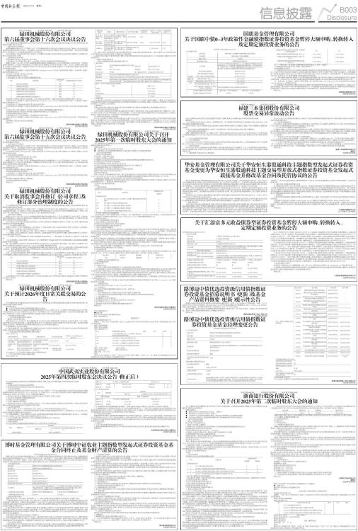 证券代码:605259 证券简称:绿田机械 公告编号:2025-026 绿田机械股份有限公司 第六届董事会第十六次会议决议公告 本公司董事会及全体董事保证本公告内容不存在任何虚假记载、误导性陈述或者重大遗漏,并对其内容的真实性、准确性和完整性承担法律责任。 一、董事会会议召开情况 绿田机械股份有限公司(以下简称“公司”)第六届董事会第十六次会议于2025年12月13日(星期六)在公司会议室以现场结合通讯表决的方式召开。会议通知已于2025年12月8日通过电子通讯等方式送达各位董事。本次会议应出席董事7名,实际出席7名,公司监事及高级管理人员列席会议。 会议由董事长、总经理罗昌国先生主持召开,本次董事会的召集、召开程序符合有关法律法规、规章和《公司章程》的规定,会议决议合法、有效。 二、董事会会议审议情况 经与会董事认真审议,会议形成了如下决议: 1、审议通过《关于取消监事会、修订〈公司章程〉并办理工商变更登记等事项的议案》 根据《公司法》《关于新〈公司法〉配套制度规则实施相关过渡期安排》《上市公司章程指引(2025年修订)》等相关法律法规的规定,公司结合实际情况对《公司章程》进行全面梳理,并对相关内容进行了修订。本次《公司章程》修订完成后,公司拟不再设置监事会,由董事会审计委员会行使《公司法》规定的监事会的职权,《公司监事会议事规则》等监事会相关制度相应废止。 具体内容详见公司披露于上海证券交易所网站(www.sse.com.cn)的《关于取消监事会并修订〈公司章程〉及修订部分治理制度的公告》。 表决结果:7票同意,0票反对,0票弃权。 本议案尚需提交股东大会审议。 2、审议通过《关于修订公司部分治理制度的议案》 ■ 表决结果:7票同意,0票反对,0票弃权。其中《股东会议事规则》《董事会议事规则》尚需提交股东大会审议。 具体内容详见公司披露于上海证券交易所网站(www.sse.com.cn)的《关于取消监事会并修订〈公司章程〉及修订部分治理制度的公告》。 3、审议通过《关于预计2026年度日常关联交易的议案》 具体内容详见公司披露于上海证券交易所网站(http://www.sse.com.cn)的《关于预计2026年度日常关联交易的公告》。 本议案已经公司独立董事专门会议审议通过,全体独立董事同意提交董事会审议。 表决结果:5票同意,0票反对,0票弃权,关联董事罗昌国、罗正宇回避表决。 本议案尚需提交股东大会审议。 4、审议通过《关于召开2025年第一次临时股东大会的议案》 具体内容详见公司披露于上海证券交易所网站(http://www.sse.com.cn)的《关于召开2025年第一次临时股东大会的通知》。 表决结果:7票同意,0票反对,0票弃权。 特此公告。 绿田机械股份有限公司董事会 2025年12月15日 证券代码:605259 证券简称:绿田机械 公告编号:2025-027 绿田机械股份有限公司 第六届监事会第十五次会议决议公告 本公司监事会及全体监事保证本公告内容不存在虚假记载、误导性陈述或者重大遗漏,并对其内容的真实性、准确性和完整性承担法律责任。 一、监事会会议召开情况 绿田机械股份有限公司(以下简称“公司”)第六届监事会第十五次会议于2025年12月13日(星期六)在公司会议室以现场的方式召开。会议通知已于2025年12月8日通过电子通讯等方式送达各位监事。本次会议应出席监事3人,实际出席监事3人。公司董事会秘书罗正宇先生列席了本次会议。 会议由监事会主席王玲华先生主持,本次会议的召集、召开符合有关法律、法规、规章和《公司章程》的规定,会议形成的决议合法有效。 二、监事会会议审议情况 经与会监事认真审议,会议形成了如下决议: 1、审议通过《关于取消监事会的议案》 根据《公司法》《关于新〈公司法〉配套制度规则实施相关过渡期安排》《上市公司章程指引(2025年修订)》等相关法律法规的规定,公司拟不再设置监事会,由董事会审计委员会行使《公司法》规定的监事会的职权,《公司监事会议事规则》等监事会相关制度相应废止。 具体内容详见公司披露于上海证券交易所网站(www.sse.com.cn)的《关于取消监事会并修订〈公司章程〉及修订部分治理制度的公告》。 表决结果:3票同意,0票反对,0票弃权。 本议案尚需提交股东大会审议。 2、审议通过《关于预计2026年度日常关联交易的议案》 具体内容详见公司披露于上海证券交易所网站(http://www.sse.com.cn)的《关于预计2026年度日常关联交易的公告》。 表决结果:3票同意,0票反对,0票弃权。 本议案尚需提交股东大会审议。 特此公告。 绿田机械股份有限公司监事会 2025年12月15日 证券代码:605259 证券简称:绿田机械 公告编号:2025-028 绿田机械股份有限公司 关于取消监事会并修订《公司章程》及修订部分治理制度的公告 本公司董事会及全体董事保证本公告内容不存在任何虚假记载、误导性陈述或者重大遗漏,并对其内容的真实性、准确性和完整性承担法律责任。 绿田机械股份有限公司(以下简称“公司”)于2025年12月13日召开了第六届董事会第十六次会议,审议通过了《关于取消监事会、修订〈公司章程〉并办理工商变更登记等事项的议案》《关于修订公司部分治理制度的议案》。同日,公司召开了第六届监事会第十五次会议,审议通过了《关于取消监事会的议案》。 一、取消监事会的情况 根据《公司法》《关于新
