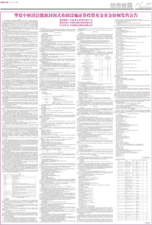 | 华夏中核清洁能源封闭式基础设施证券投资基金基金份额发售公告 |
