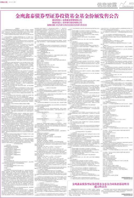 金鹰鑫泰债券型证券投资基金基金份额发售公告