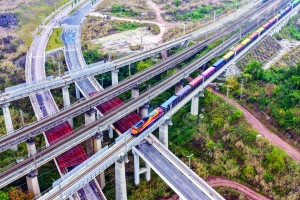 1月7日,铁海联运“重庆造”新能源汽车专列在重庆果园港鱼嘴站顺利发车(无人机照片)。 1月7日,一列满载108台“重庆造”新能源汽车的铁海联运专列,从重庆果园港鱼嘴站发出,预计在48小时后抵达广州南沙港,随后换装海轮运往中东市场。此趟专列是2026年首趟铁海联运“重庆造”新能源汽车专列,也是自2025年12月底渝穗两地“新能源汽车铁海联运海事监管互认试点”正式启动以来进行的首批规模化运输业务。重庆市作为全国重要的汽车产业基地,此前已稳定运行经浙江宁波、广西钦州的东向与南向铁海联运班列。 新华社记者 唐奕 摄