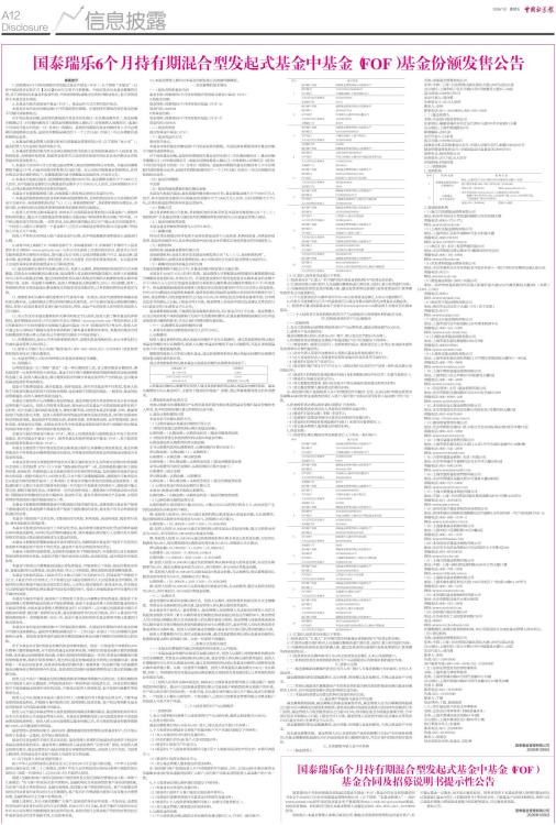 国泰瑞乐6个月持有期混合型发起式基金中基金(FOF)基金份额发售公告
