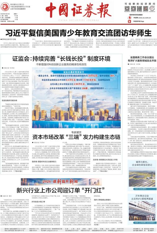 加大对新质生产力的支持服务力度。这几年,证监会着力深化“两创板”改革,在科创板推出了设置科创成长层、引入资深专业投资者等“1+6”的改革措施,在创业板启用更具包容性的第三套上市标准。总地看,改革效应正加快显现,资本市场“科技含量”不断提升。2025年,电子行业总市值已超过银行板块,成为A股第一大行业。在A股市值前50名公司中,科技企业从5年前的18家增加到了目前的24家。