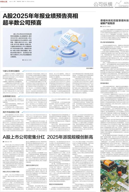 ● 本报记者 罗京 2025年A股上市公司现金分红再攀高峰。证监会副主席陈华平1月11日在第三十届中国资本市场论坛上表示,2025年A股上市公司现金分红2.55万亿元,再创历史新高,是同期IPO和再融资规模的两倍。进入2026年1月,多家上市公司密集披露半年度、三季度及特别分红方案,相关红利陆续发放至股东账户,以真金白银兑现对投资者的回报承诺。 业内人士分析指出,高频次、高比例的分红举措,不仅反映出上市公司整体盈利能力的提升和现金流的充裕,也体现了公司治理结构的完善与股东回报意识的强化。通过持续稳定的分红,上市公司向市场明确传递了经营稳健、对未来增长有信心的积极信号。 多家公司分红方案集中落地 近期,一批上市公司明确分红实施时间表,相关分红将于2026年1月陆续到账。 工业富联1月8日晚公告,公司2025年半年度权益分派即将实施,每股派发现金红利0.33元(含税),共计派发现金红利65.50亿元,股权登记日为1月15日,除权除息日及红利发放日均为1月16日。 佛燃能源、泓博医药、广东明珠等上市公司发布2025年前三季度权益分派实施公告:佛燃能源2025年前三季度利润分配方案为每10股派发现金红利2.5元(含税),股权登记日为2026年1月14日,除权除息日为1月15日;泓博医药每10股派1元(含税),1月12日为股权登记日;广东明珠A股每股派息0.20元(含税),1月14日登记、1月15日派息。 此外,还有多家公司近期披露了2025年前三季度利润分配预案。例如海通发展拟每10股派现0.5元,金域医学拟每10股派现8.8元,斯瑞新材拟每10股派现0.40元。从分红占比看,部分公司现金分红金额占当期净利润比例较高,体现了较强的回报意愿。 创新分红频率与方式 从分红结构看,近年来上市公司分红行为呈现“常态化、多元化”特征。除了传统的年度分红外,中期分红、季度分红、特别分红等方式逐渐普及,分红节奏更加贴合企业经营与股东期待。 泸州老窖1月9日晚发布了2025年中期利润分配方案。公告称,经董事会决议,拟以现有总股本约14.72亿股为基数,向全体股东每10股派发现金红利13.58元(含税),合计拟派发现金红利约20亿元(含税)。 新集能源、华电新能近期公布了2025年“特别分红”方案,进一步回馈股东。新集能源1月6日晚公告,拟实施2025年特别分红,每10股派发现金红利0.50元(含税),共计派发现金股利约1.3亿元。华电新能1月7日晚公告,公司拟实施特别分红,拟向全体股东每10股派发现金红利0.3元(含税),合计拟派发现金红利12.51亿元(含税)。 方盛制药1月11日晚披露特别分红实施公告,每股派息0.15元(含税),共计派息6586.22万元(含税),股权登记日为1月15日,1月16日除权除息。方盛制药董秘何仕向记者表示,在没有大的资本性开支时,公司会坚持持续稳健的分红政策,让投资者充分分享上市公司持续稳健增长的红利,增加其获得感。 据了解,为持续提升股东获得感,方盛制药也不断优化分红机制。2020年,公司实施“双红”政策,即一年进行两次分红(年度分红+中期分红)。2024年,公司再次创新突破,启动“三红”机制,尝试一年三次分红(年度分红+中期分红+特别分红)。至今,公司已成功完成5次中期分红和2次特别分红。 业内人士表示,这种趋向灵活、高频的分红安排,不仅提升了股东的实际获得感,也有助于塑造公司重视股东权益的市场形象,增强长期投资者的黏性。 稳定分红机制渐成常态 在政策引导与市场期待的双重推动下,建立稳定、可持续的分红机制已成为不少上市公司的主动选择。许多企业将分红纳入公司战略与治理体系,逐步形成“盈利-分红-再投资”的良性循环。 例如咸亨国际自2021年上市以来,每年现金分红比例均保持在60%以上,累计分红金额已超过IPO募资总额。咸亨国际表示,回报股东是公司持续在做的事情,也是公司核心经营理念的重要组成部分。 格力电器表示,公司重视投资者回报,坚持稳定、可持续的分红政策。公司近十年、近五年累计分红金额在上市A股公司(剔除金融石油石化行业)中分别位列第7位、第8位,近10年实施现金分红15次,分红水平、分红持续性及稳定性均位于上市公司前列。此外,商络电子、百联股份等企业也已建立起较为明确的分红政策,并连续多年实施。 中国上市公司协会发布的2025年上市公司治理情况报告显示,从现金分红来看,截至2025年6月30日,2024年度A股上市公司现金分红总额为2.4万亿元。截至2024年末,在4445家上市满三年的公司中,2447家近三年连续现金分红;在3569家上市满五年的公司中,1681家近五年连续现金分红,其中210家近五年分红连续增长。 市场分析普遍认为,上市公司现金分红水平的提升,是资本市场高质量发展的重要体现,未来A股公司分红积极性、稳定性和可预期性有望进一步增强。