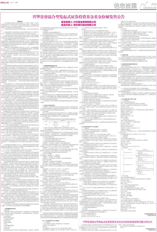 兴华景睿混合型发起式证券投资基金基金合同及招募说明书提示性公告