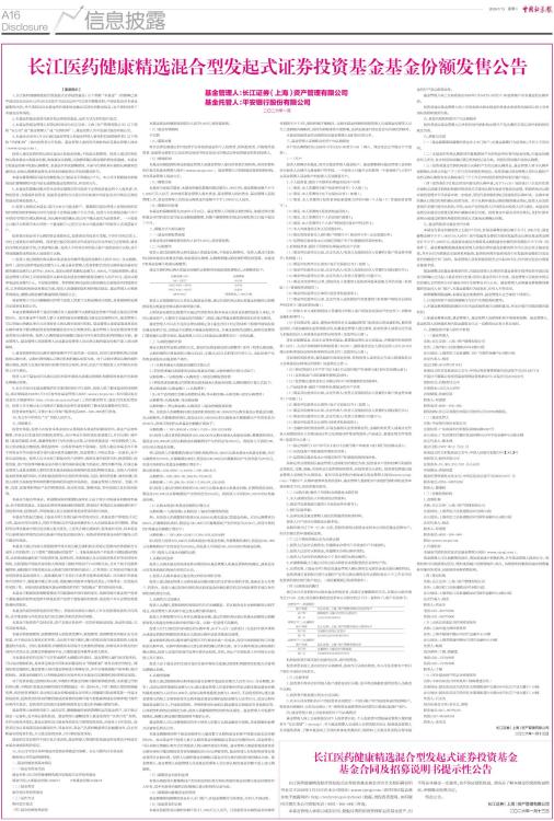 长江医药健康精选混合型发起式证券投资基金基金份额发售公告