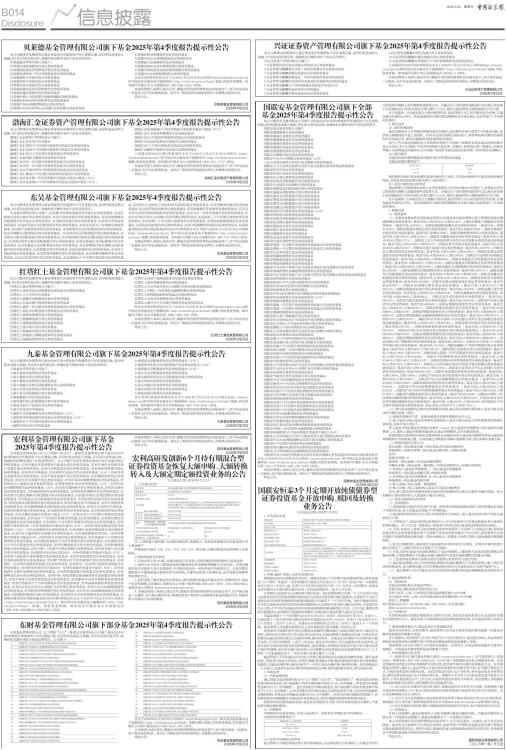 九泰基金管理有限公司旗下基金2025年第4季度报告提示性公告