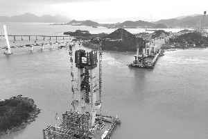 这是1月25日拍摄的甬舟铁路富翅门公铁两用大桥东主塔上横梁浇筑现场(无人机照片)。 1月25日,由中国铁建大桥局承建的甬舟铁路富翅门公铁两用大桥东主塔上横梁顺利浇筑完成,标志着该主塔主体结构施工取得突破,为后续主塔封顶及全线桥面系施工奠定了基础。 富翅门公铁两用大桥连接舟山本岛与富翅岛,是甬舟铁路的控制性工程之一。大桥全长约1726米,主跨达388米,采用双线铁路、6车道高速公路同层布置的形式。 新华社图文