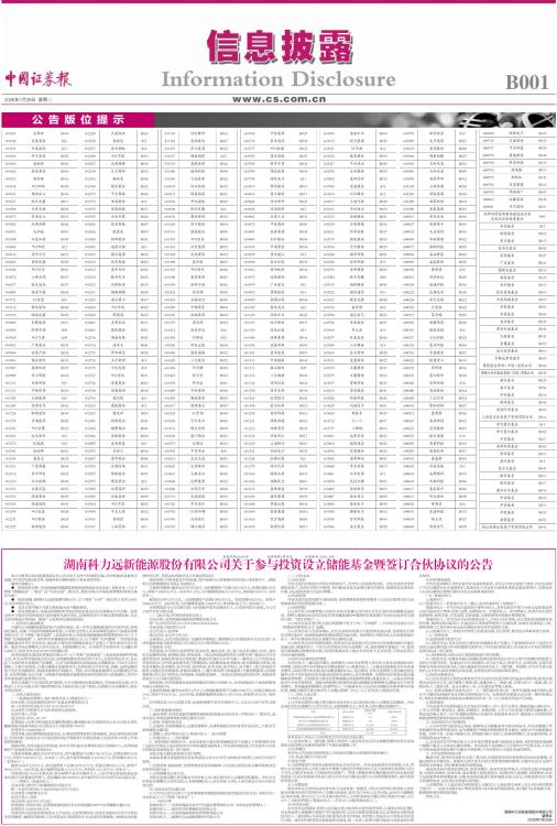 湖南科力远新能源股份有限公司关于参与投资设立储能基金暨签订合伙协议的公告