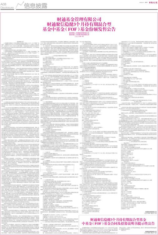 中基金(FOF)基金合同及招募说明书提示性公告