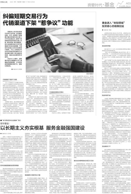 ● 本报记者 王宇露 党的二十届四中全会是在我国迈上全面建设社会主义现代化国家新征程、向第二个百年奋斗目标进军的关键时刻召开的一次十分重要的大会。全会为金融行业在新发展阶段如何更好服务国家大局指明了方向。金融是国民经济的血脉,是国家核心竞争力的重要组成部分。如何在高质量发展进程中更好发挥金融功能,是金融行业必须回答的时代课题。 作为资本市场的重要参与主体,公募基金行业在连接居民财富与实体经济、稳定市场预期、促进长期投资方面发挥着不可替代的作用。银华基金认为,深入学习贯彻党的二十届四中全会精神,将全会精神转化为行业高质量发展的生动实践,是每一家基金管理机构必须肩负起的时代责任。 筑牢金融强国建设的思想根基 银华基金深刻体会到,学习贯彻全会精神,首要在于深刻理解其历史逻辑、理论内涵与实践指向,从而在时代潮流中找准自身定位,明确职责使命。 一是深刻领悟全会的里程碑意义,强化使命担当。全会系统总结了新时代取得的辉煌成就,对“十五五”时期经济社会发展作出了顶层设计,对于凝聚全党全国智慧力量,扎实推进中国式现代化,具有承前启后、继往开来的深远意义。银华基金认为,作为资本市场专业力量的一份子,必须心怀“国之大者”,将公司战略与国家战略紧密对接,主动肩负起服务高质量发展、助力金融强国建设的行业责任,在时代赋予的机遇中展现更大作为。 二是牢牢坚持金融工作的人民性,筑牢发展根基。全会将以人民为中心的发展思想贯穿在“十五五”时期经济社会发展的一系列决策部署中。金融血脉来源于人民,必须服务于人民。银华基金始终将“为投资者创造价值”作为公司使命,不断强化受托责任意识。深刻认识到基金行业管理的是亿万百姓的财富,承载着人民群众对美好生活的向往。因此,银华基金一直秉承“坚持做长期正确的事”的价值观,完善体系化、平台化、工业化的投研系统,致力于降低波动和回撤,提升获取超额收益的水平,为广大投资者带来更好的投资体验,力争让投资者赚到钱,多赚钱。 三是科学认识发展的阶梯式规律,保持战略定力。全会明确指出,实现社会主义现代化是一个阶梯式递进、不断发展进步的历史过程,需要不懈努力、接续奋斗。这启示我们,资产管理能力的提升、客户信任的建立、公司品牌的形成,绝非一日之功。不追逐短期规模和排名,而是注重发展的质量和可持续性。只有遵循行业规律,一步一个脚印,夯实投研、风控、服务、人才等各方面基础,构建穿越周期的核心能力,才能行稳致远,最终实现高质量发展。 锻造服务大局的专业力量 学习贯彻全会精神,关键在于落实。当前资本市场的制度环境正在经历一场方向明确、影响深远的重塑。无论是新“国九条”、还是《推动公募基金高质量发展行动方案》《公开募集证券投资基金业绩比较基准指引》等制度安排,都将行业的方向清晰指向“长期主义”,通过提升市场稳定性、透明度和治理质量,让长期投资更具扎实的实现条件,让投资者的获得感更强,让产品业绩更加稳定可预期。 银华基金表示,将切实把学习成果转化为服务实体经济、助力共同富裕、促进市场稳定的实际行动。 一是聚焦科技金融与绿色金融,引活水润泽实体经济。围绕发展新质生产力、建设现代化产业体系的战略部署,银华基金积极发挥资产配置和价格发现功能。加大对科技创新、先进制造、绿色发展等领域的深度研究,通过设立相关主题基金和ETF、支持“专精特新”企业发展等方式,引导更多社会资本投向国家急需的重点领域和薄弱环节。特别是积极布局数字经济、高端装备、绿色低碳等符合未来产业方向的领域,助力产业结构优化升级,推动金融资源与实体经济高质量发展实现更高水平的循环畅通。 二是深耕普惠金融与养老金融,助力共同富裕。银华基金始终牢记金融为民的宗旨。一方面,持续完善多层次、广覆盖的产品线,为不同风险偏好和生命周期的投资者提供适配的理财工具,特别是加强对个人养老金业务的布局和服务,帮助投资者做好全生命周期的财富规划。另一方面,高度重视投资者陪伴与教育,通过线上线下多种形式,传播理性投资、价值投资、长期投资理念,帮助投资者提升金融素养,增强风险防范意识,努力提升投资体验和获得感,在高质量发展中促进共同富裕。 三是坚守长期投资与价值投资,稳市场发挥机构效能。作为资本市场专业机构投资者之一,银华基金坚持基于深度基本面研究的投资框架,不断优化长效激励约束机制,实施以三年以上为主的长周期考核,引导投研人员聚焦企业长期价值。同时,积极布局权益类基金,加速发展一系列“宽基+主题+策略”ETF产品,形成覆盖低波、中低波、中波、中高波及高波的全天候配置工具箱,努力为投资者做好一站式资产配置。此外,积极响应主动权益基金浮动管理费率改革要求,在业内首批发行成立新一代与业绩挂钩的浮动管理费率基金“银华成长智选”。 四是深化改革创新与练好内功。对标行业高质量发展要求,银华基金以全会精神为指引,持续深化内部改革。全面推进权益投资的“工业化”体系建设和“小巨人计划”,强化基金经理投资风格的稳定性。加强人才培养和梯队建设,持续赋能投资、风控、运营、服务全链条。同时,将