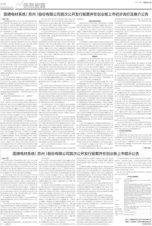 固德电材系统(苏州)股份有限公司首次公开发行股票并在创业板上市初步询价及推介公告