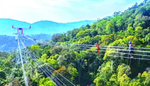 2月5日,施工人员分别从位于中国和老挝境内的铁塔相向出发,前往线路连接点汇合(无人机照片)。 2月5日,中老500千伏联网工程中国段和老挝段输电导线在中国云南省磨憨与老挝磨丁交界处实现物理连通,标志着该工程国内外线路全线贯通。该项目是继中老铁路之后,中老两国共建“一带一路”的又一标志性工程。 新华社记者 彭奕凯 摄