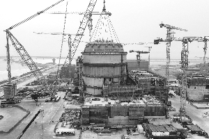 图为2月10日拍摄的徐大堡核电站1号机组核岛钢制安全壳顶封头吊装作业现场(无人机照片)。 2月10日,位于辽宁省葫芦岛市的徐大堡核电站1号机组核岛钢制安全壳顶封头吊装就位,标志着该机组建设从土建施工全面转入安装阶段。据介绍,顶封头位于核岛顶部,是钢制安全壳最后一个大型模块,由64块弧形钢板拼装焊接而成,整体呈半椭球形结构,其内径近40米,总高度超11米。本次吊装呈现物项多、总重大、精度高的特点,是核电工程建设的重要节点。 新华社发