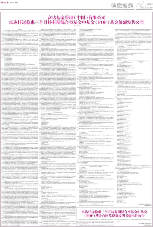 富达任远稳惠三个月持有期混合型基金中基金(FOF)基金份额发售公告