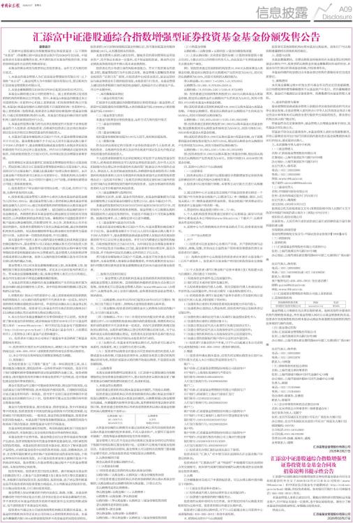 汇添富中证港股通综合指数增强型证券投资基金基金份额发售公告