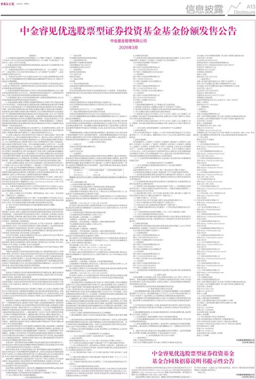 中金睿见优选股票型证券投资基金基金份额发售公告
