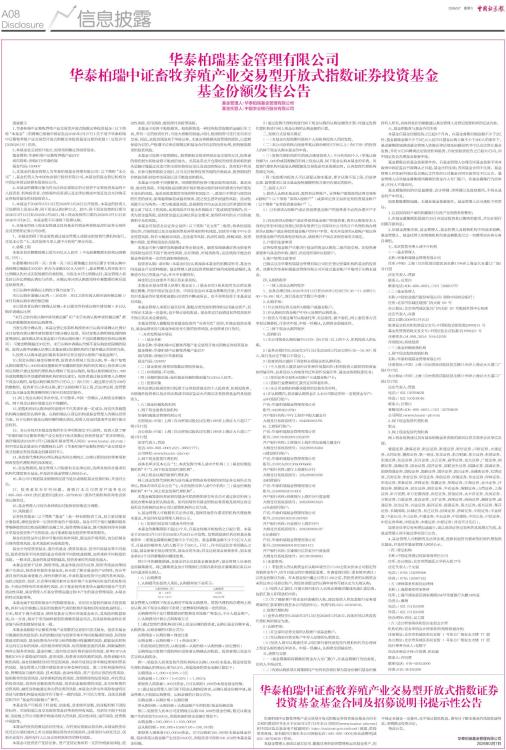 华泰柏瑞中证畜牧养殖产业交易型开放式指数证券投资基金基金合同及招募说明书提示性公告