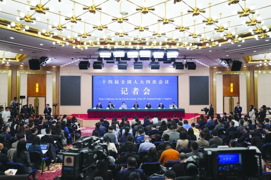 3月7日,十四届全国人大四次会议在北京梅地亚中心新闻发布厅举行记者会。教育部部长怀进鹏、民政部部长陆治原、人力资源和社会保障部部长王晓萍、文化和旅游部部长孙业礼、国家卫生健康委员会主任雷海潮就教育、民政、人力资源和社会保障、文旅、卫生健康等相关问题回答中外记者提问。(相关报道见A02版)