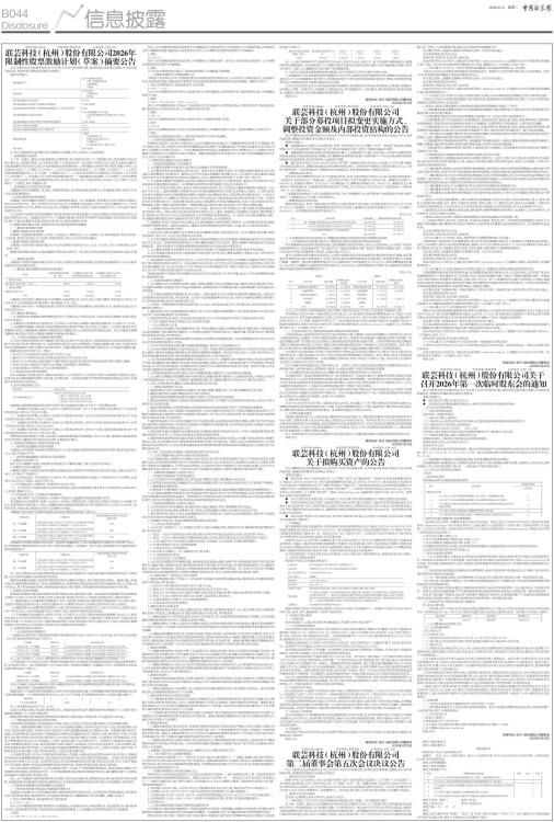 联芸科技(杭州)股份有限公司2026年限制性股票激励计划(草案)摘要公告
