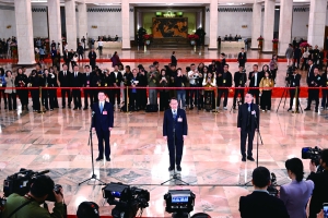 3月11日,全国政协十四届四次会议第三场“委员通道”集体采访活动在北京人民大会堂举行。新华社记者 曹祎铭 摄