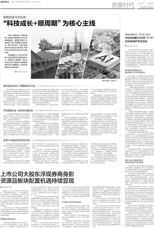 近期,华泰证券、开源证券等十余家机构密集召开2026年春季策略会,围绕宏观经济、市场趋势与资产配置展开深度研判。据不完全统计,已有14家券商召开会议或公布时间表,市场对2026年投资方向的关注持续升温。 机构普遍认为,2026年市场将从流动性驱动转向盈利驱动,以“科技成长+顺周期”作为全年核心主线,高股息与消费复苏板块可作为稳健底仓,结构性机遇则成为投资关键。 ● 本报记者 赵中昊 盈利驱动成共识 周期路径见分歧 各家券商的核心共识明确:2026年全球及中国经济将逐步摆脱对流动性的依赖,盈利改善将成为主导市场的力量。尽管对市场驱动力的判断趋于一致,但在周期演进的脉络上,机构观点各具特色。 周期驱动逻辑方面,华泰证券首席宏观经济学家易峘提出了“更耗材的全球资产开支周期”观点。她认为,AI资本开支基建化、全球国防开支增加、中国地产建安成本触底、全球制造业修复这四股力量叠加,将推动PPI回升,成为中国资产重估的重要指标。基于此,华泰证券宏观团队上调了对中国PPI与人民币汇率的预测。易峘表示,人民币顺周期上行反映了投资回报率改善与风险溢价下降,有望使美元计价的中国企业盈利增速自2021年后首次超越主要发达经济体,进而影响全球资产配置格局。 实体经济转型视角下,开源证券宏观经济首席分析师何宁聚焦于“新旧动能转换”。她认为,2026年实体经济将加快提质增效进程。在“十五五”规划的指引下,科技安全成为核心方向,重点产业形成“8466”格局,新质生产力有望接替房地产成为支柱产业。数据显示,新质生产力占名义GDP比重已接近狭义房地产,影响力不断增强,带动全要素生产率(TFP)稳步上行。中国的新旧动能转换与全球电气化趋势相契合,增加了有色金属和电力基建的需求,新质生产力正呈现“能源为基、核心产业齐驱”的发展态势。 短期风险层面,华泰证券研究所所长、固收首席张继强将伊朗局势视为主要不确定性因素。投资者情绪正从避险转向滞胀担忧,冲突持续时间成为关键变量。与此同时,其他券商更关注中长期产业趋势,认为短期地缘冲突对市场定价的影响相对有限。 市场逻辑生变 结构性机遇纷呈 当估值修复的浪潮退去,盈利改善成为检验资产的试金石,A股市场正迎来新的定价逻辑。不过,在市场风格、盈利主线及估值弹性上,机构分歧依然明显。 A股风格方面,华泰证券研究所策略首席兼金融工程首席何康提出了“新老经济再均衡”的判断。他认为,在AI叙事演变与PPI预期回升的背景下,这一风格有望持续强化。3月下旬至4月,宏观数据与个股财报集中发布,市场将转向基本面定价。高景气行业集中在周期、制造、TMT领域,整体呈现结构分化下的弱复苏态势,出海成为企业业绩改善的重要因素。若一季度宏观数据超预期,大盘价值股或迎来风格切换。量化模型显示,在流动性宽松、通胀温和上行的环境下,股票与商品将受益,下半年商品或迎来短中周期共振上涨。 开源证券策略首席分析师韦冀星持更为乐观的态度。他认为,2026年A股将进入“盈利结构+资金结构”双轮驱动的结构慢牛。从DDM模型来看,分子端盈利增速的边际变化主导估值水平,分母端资金生态的改变重塑市场结构。在地产投资属性弱化的背景下,居民资金有望通过“固收+”、二级债基等渠道间接入市,为市场提供稳定的增量资金。 兴业证券首席策略分析师张启尧表示,涨价交易是未来阶段的核心投资策略,其季节性规律显著。全年将有两大超额收益窗口,分别是2月-4月和7月-8月。此外,景气投资的日历效应会进一步强化这一季节性特征,3月-4月的涨价交易受其影响尤为明显。 西部证券策略首席分析师曹柳龙认为,鉴于俄乌冲突缓解、OPEC暂停扩产,2026年全球或迎来“油价超级周期”,大炼化板块将显著受益。他认为,中国出口能力强劲,大炼化行业现金流稳定、资本开支较低,有望迎来价值投资良机,建议上半年配置石油、化工板块,下半年转向白酒、恒生科技板块。 从资金端观察,西部证券业务副所长、非银首席分析师孙寅认为,权益市场中长期上行趋势明确。在低利率环境下,固收类资金再配置压力凸显,叠加政策支持,固收资金向权益迁徙的障碍逐步消除。险企、券商自营及资管、AMC等非银机构成为资金入市的重要主体,带动市场活跃度提升,非银机构也将受益于资本市场繁荣,实现营收利润与估值同步增长。 在景气与确定性间寻找平衡 面对复杂多变的市场环境,均衡配置不再是保守的选择,而是穿越周期的智慧。 在大类资产配置上,机构共识是股强于债、商品具弹性。张继强认为,2026年股票和商品表现将优于债券,上游资源品优于下游消费,硬件好于软件,外需导向型行业竞争力突出。何康表示,下半年商品或迎来短中周期共振上行,弹性可能超预期。 开源证券固定收益首席分析师陈曦对债市持谨慎态度,他认为2026年债市将结束“低利率时代”,当前收益率处于合理下边界,基本面改善将推动收益率易涨难跌。 行业配置上,“科技成长+顺周期”双主线成为共识,但细分领域与节奏把握存在分歧。在科技成长赛道,韦冀星认为算力基础设施、电力设施、生态平台是核心受益者,建议布局AI科技全产业链。华泰证券更强调细分机会,聚焦国产半导体等关键突破点,并提示避免单一环节押注。 在顺周期板块,机构推荐方向集
