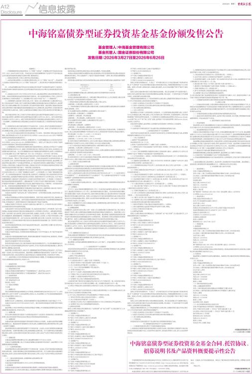 中海铭嘉债券型证券投资基金基金合同、托管协议、招募说明书及产品资料概要提示性公告
