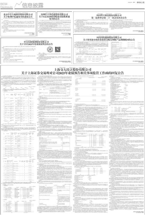关于上海证券交易所对公司2025年业绩预告相关事项监管工作函的回复公告